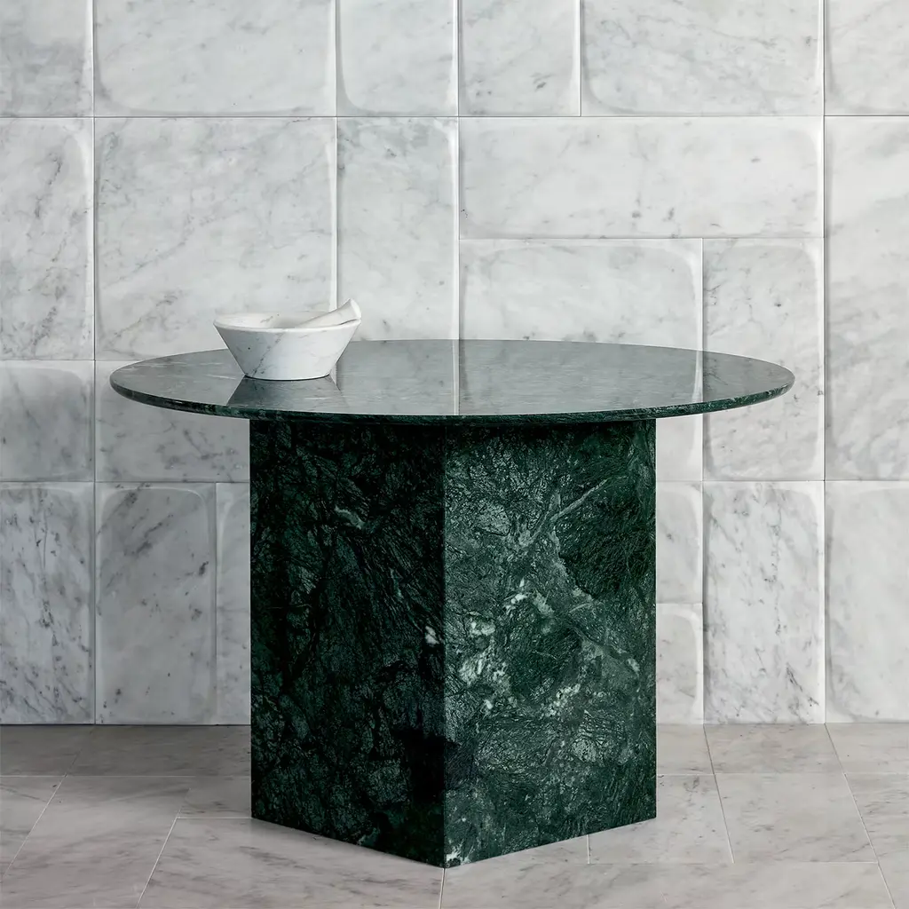 The Badisco Side Table is entirely crafted from green Imperial marble, injecting color and warmth into any living space with its spectacular interplay of deep turquoise hues. Showcasing the exceptional talent of designer Claesson Koivisto Rune, this piece combines a round top with a robust one-piece block base for a bold, striking aesthetic. Also available in other finishes, contact the Concierge for more information.