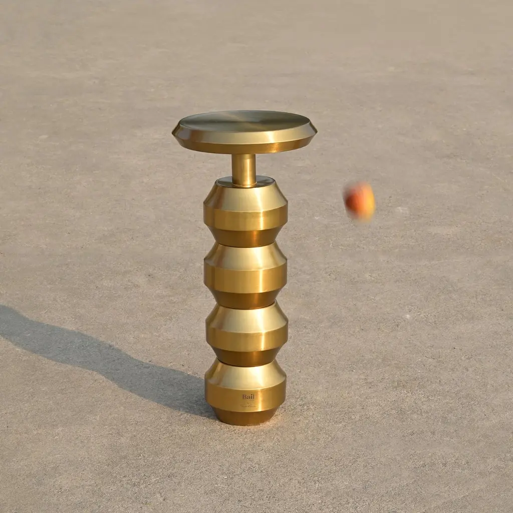 Elevate your space with a stroke of sporting spirit – our Bail Side Table. Crafted from durable mild steel with a gold finish, this table is like bringing home the winning gold trophy. Drawing inspiration from the distinctive shape of cricket bails, whether you're lounging solo or hosting friends for a match, the Bail Table is the perfect teammate for your living space. With its sleek golden curves and sturdy steel top design, it's sure to bowl you over with its charm.So why settle for a run-of-the-mill side table when you can score big with the Bail Side Table?