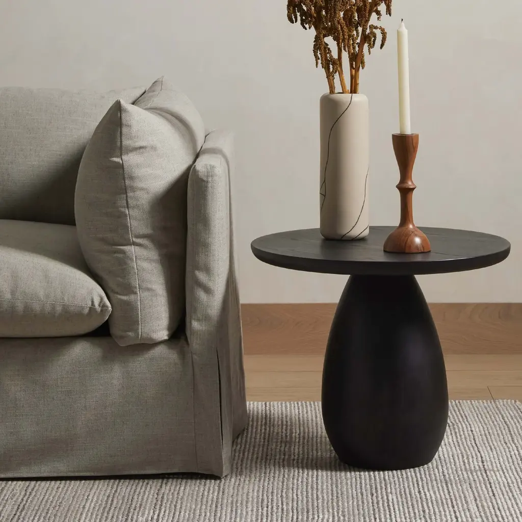 Make a shapely statement. A black-washed solid ash base supports a rounded tabletop, together spurring a soft, voluminous look with rich organic vibes. Made in Vietnam.