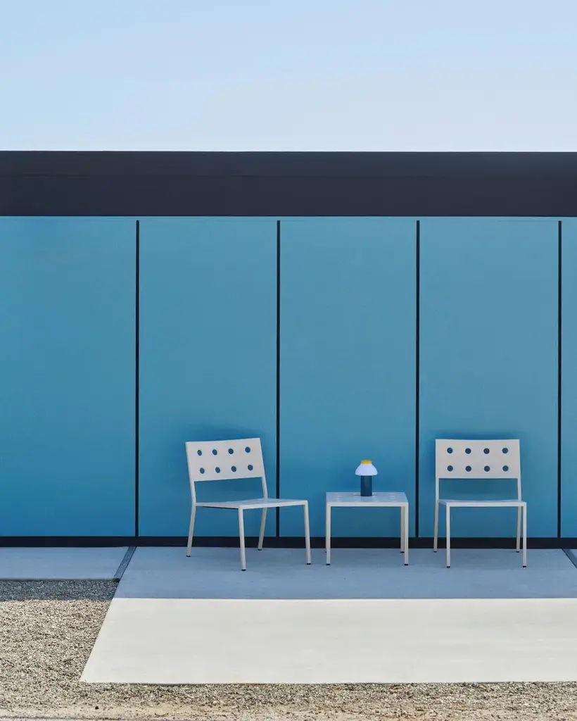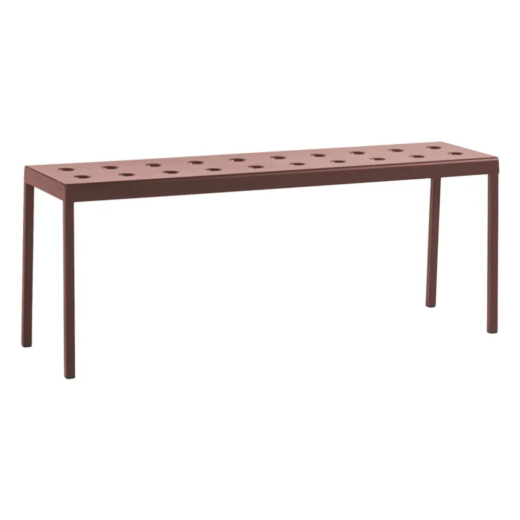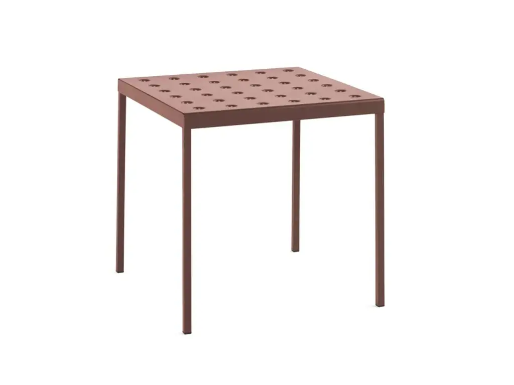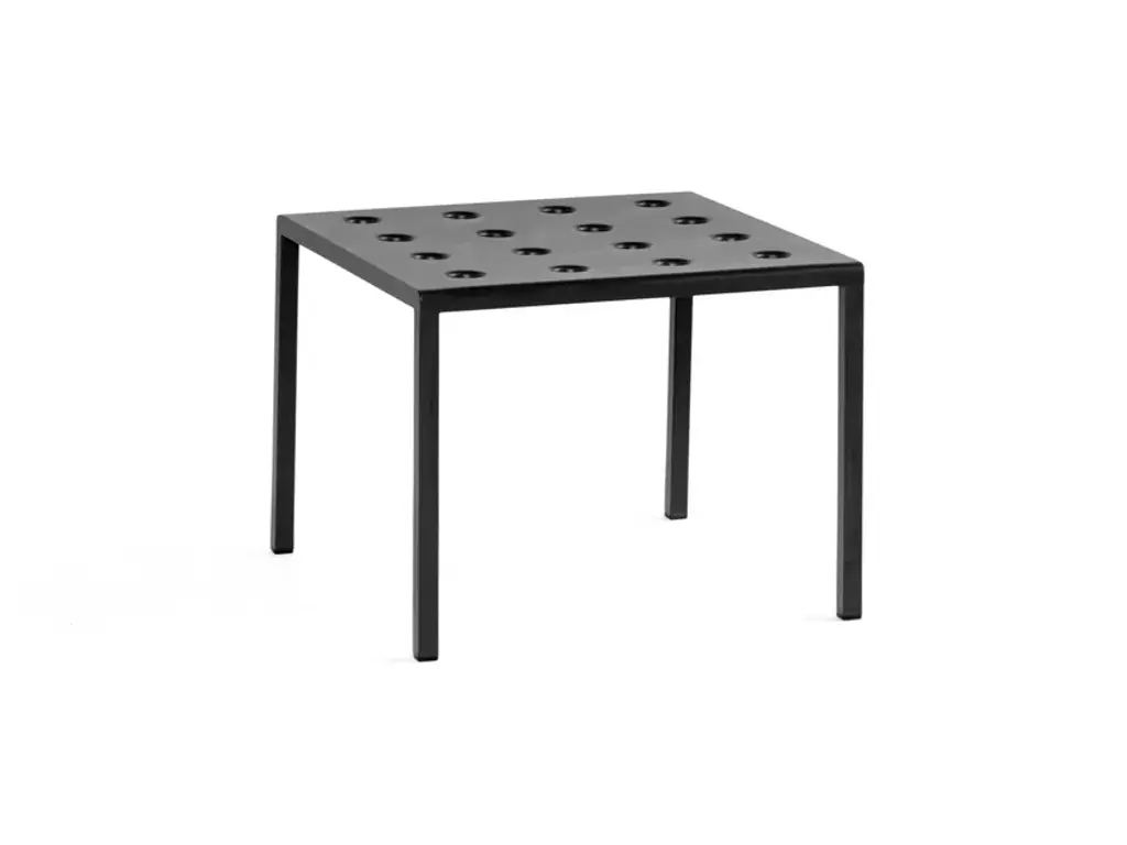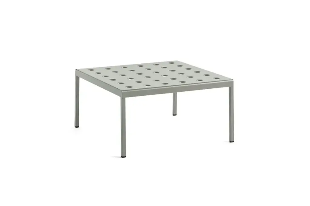 Balcony, designed by Ronan & Erwan Bouroullec for HAY, is a coffee table for the outside, with simple and square lines, characterized by holeson the surfaces that not only define the design but also reinforce the top. Balcony is suitable for all types of spaces, from small balconies and terraces to gardens and other larger outdoor areas.Made of powder coated steel with an outdoor primer for optimal strength and durability, Balcony is available in a number of different color options.Available in 5 finishes:- Anthracite power coated steel (RAL 9011)- Iron red powder coated steel (RAL 8015)- Desert green powder coated steel (RAL 140 50 05)- Dark forest powder coated steel (RAL 180 20 05)- Chalk beige powder coated steel (RAL 075 80 10