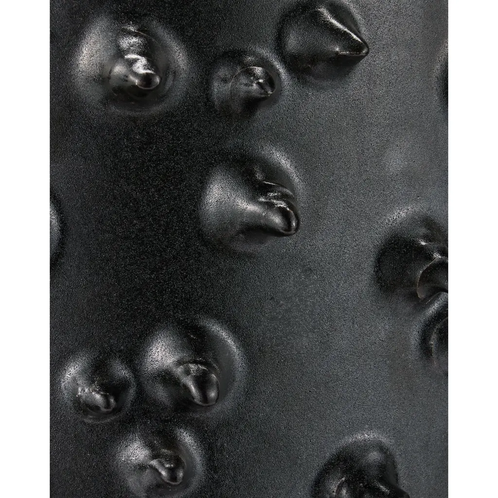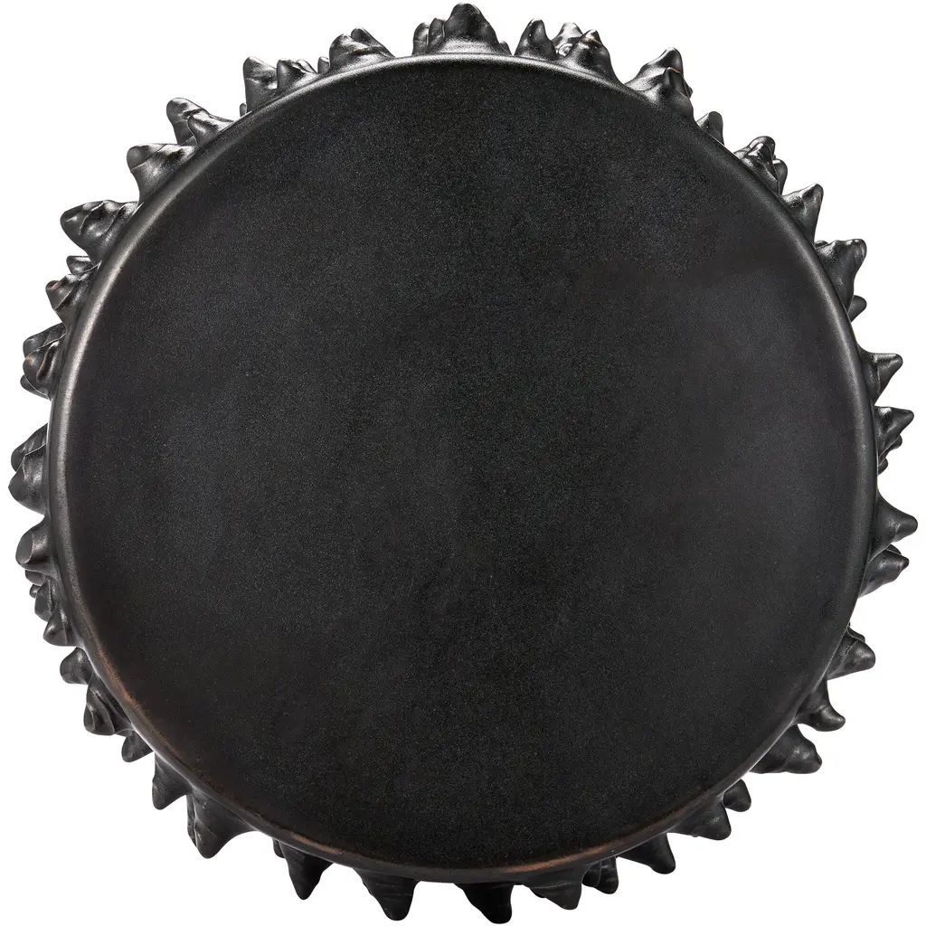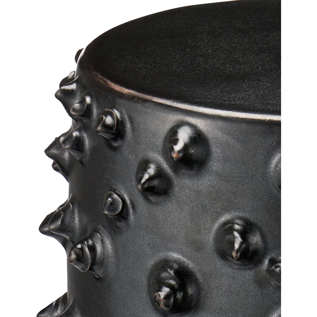 The Baltz Black Accent Table is made of ceramic covered in a rich black glaze. The protrusions that form the dimples on the sides of the table are done by hand by a group of women artisans who live at the border of Burma and Thailand. Then the black glazing is applied. This table is weather-worthy so it can be placed outside.