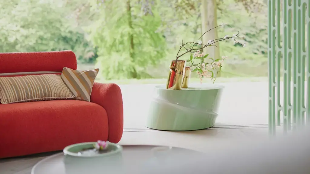 In naming this collection “Bamboo Mood", the designer wanted to weave a metaphor around bamboo, a powerful symbol of the key values of Chinese culture: it represents integrity, flexibility, simplicity and harmony. Jiang Qiong Er reinterprets these values in a poetic, often quirky and always elegant way, creating this complete collection with a sofa, screen, console, cocktail tables, rugs and ceramics. These end tables gracefully evoke a bamboo stem, with its highlighted gradient vein delicately rhythmizing the slanted line. Available in a monochrome lacquered version or with a wood-look tabletop, available in a wide range of colors.