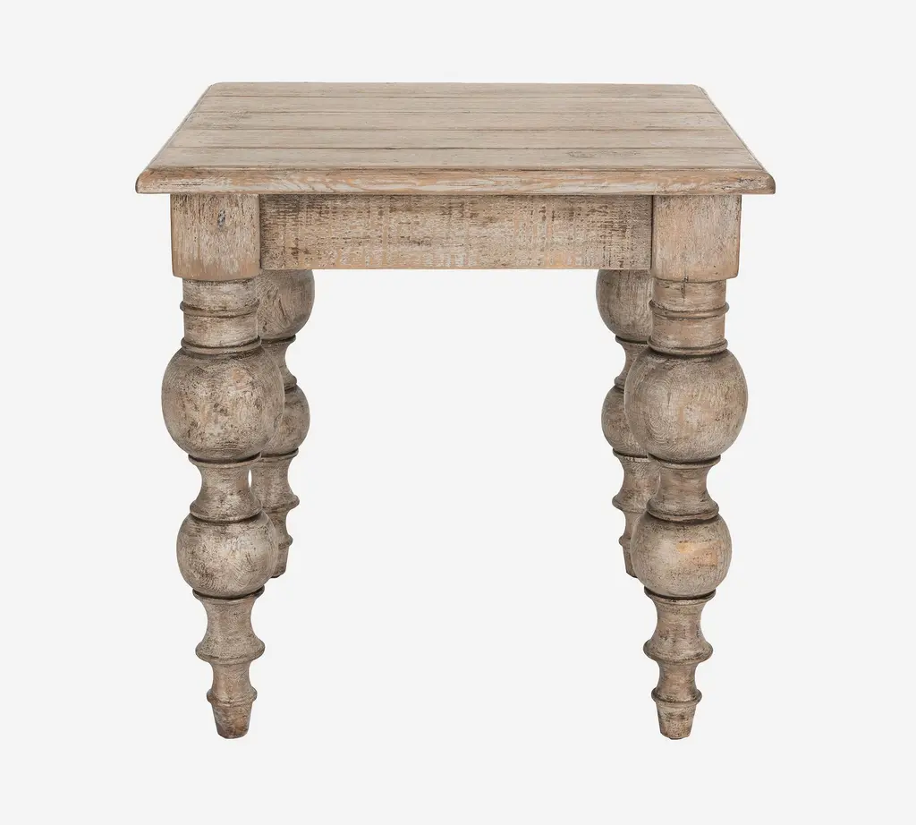 The Bander End Table is where old-world European design and rustic farmhouse style strike perfect balance, as illustrated by its French-style baluster legs and warm, distressed finish. Crafted of reclaimed wood, each piece is hand-selected for its time-honored beauty and provincial charms.