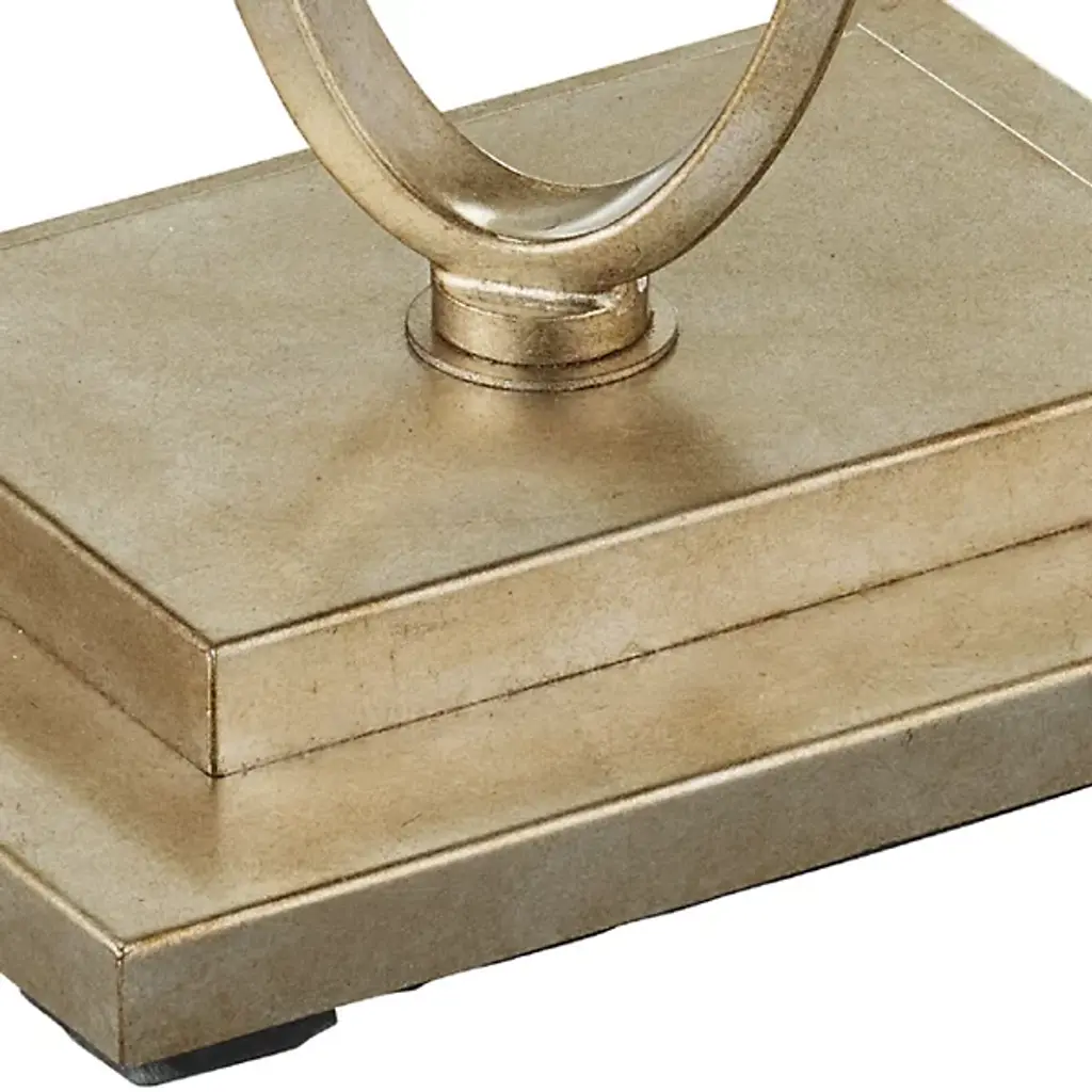 The lovely Bangle Accent Table from Currey & Company is defined by its looping framework. Composed of iron and glass, this accent table boasts a contemporary and elegant design. The table base ensures scratch-free placement on your floors. Featuring felt and a sturdy construction, it adds a touch of sophistication to your space. Revamp your home decor with this evocative piece which complements a wide range of interior styles.