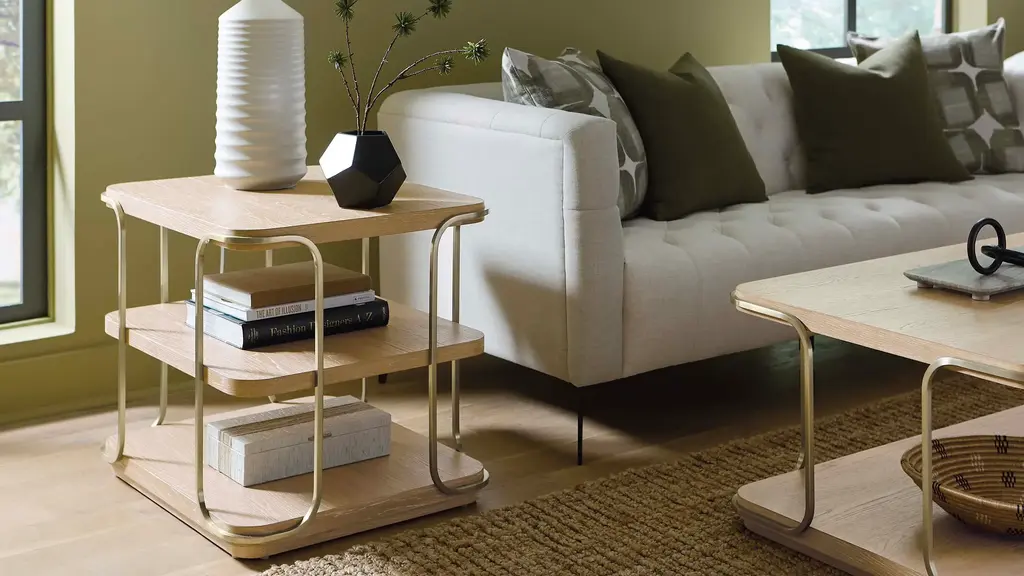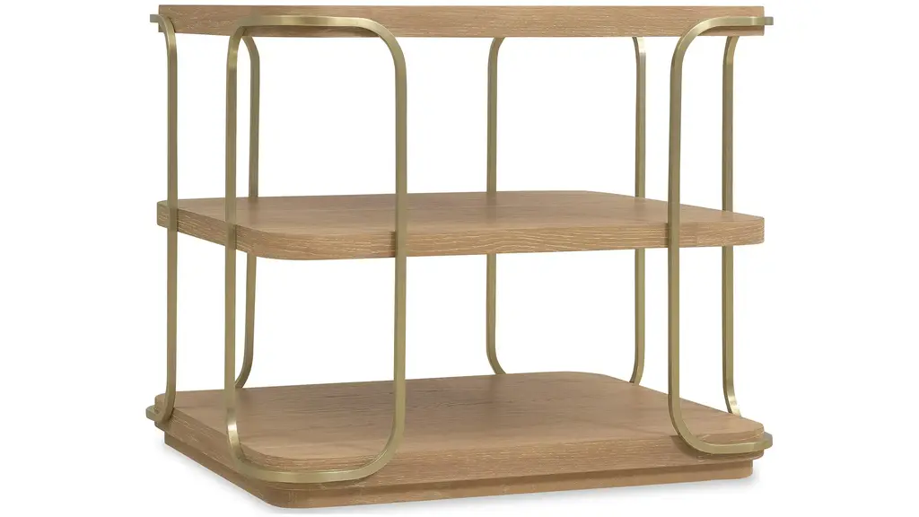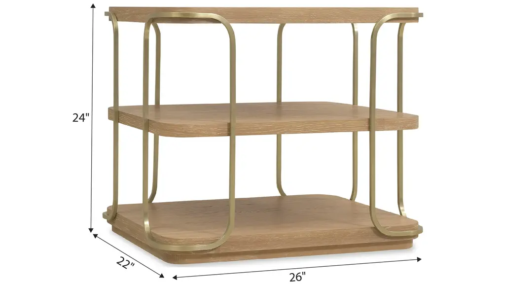 The Banyon Bay End Table is a compact and stylish piece, perfect for complementing a modern living space. Featuring white oak solids and veneers with brushed brass metal supports, this end table boasts a multi-step Desert Oak finish with wire-brushing and cerusing. The rectangle shape with rounded corners gives it a soft, contemporary appeal, while the one fixed shelf provides additional storage or display space. The plinth base offers stability, making this end table both functional and decorative. Ideal for urban, coastal, or mountain homes, its modern design blends effortlessly into a variety of living room settings.