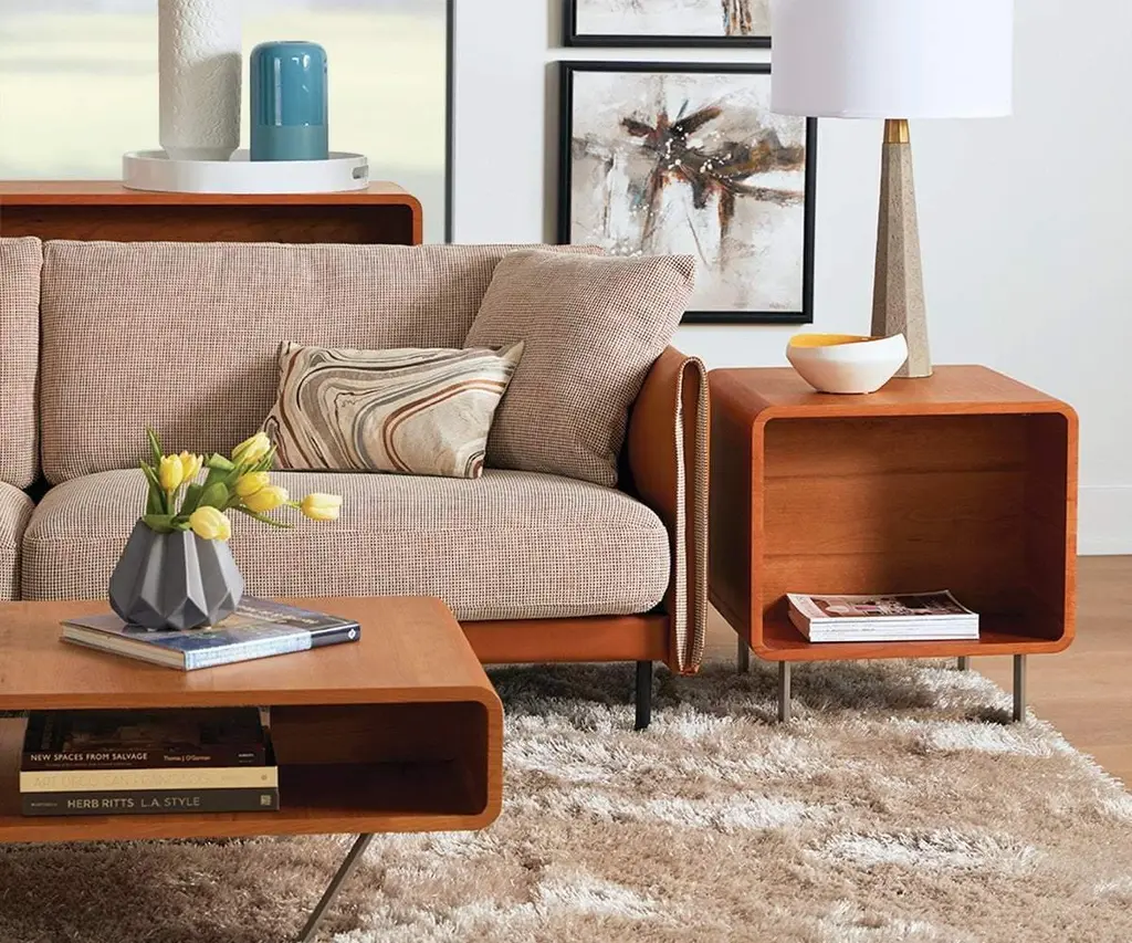 Resembling a cubist art sculpture, the Baptisia End Table masterfully blends elements of wood and metal. The result is a handsome accent piece for your living space. Tuck into place where you need a little surface space or storage. *The cherry finish will be lighter in color when new, and may enrich with age.