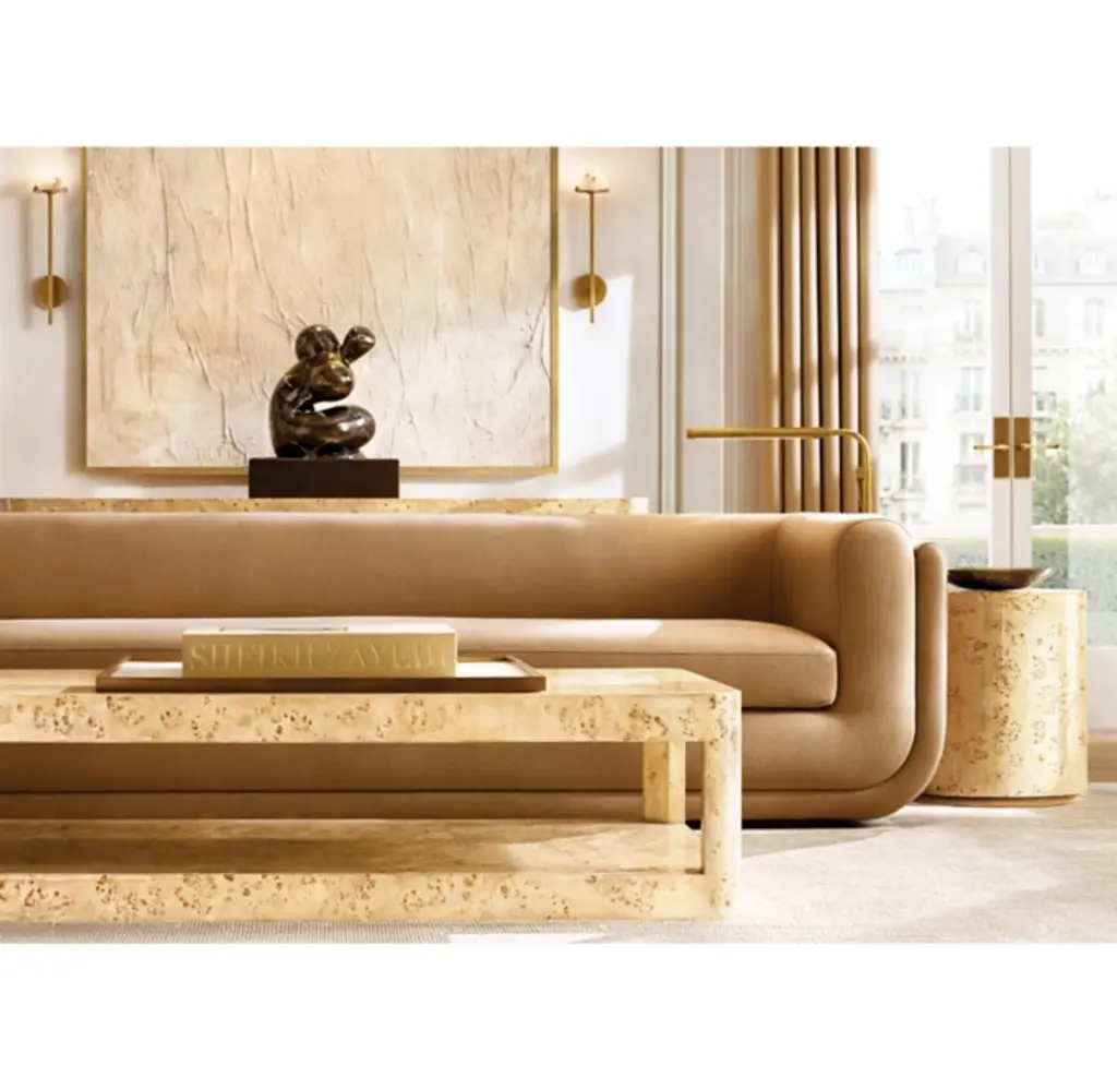 Understated and tailored in its restraint, our collection honors the minimalist geometric forms of 1970s postmodernism and the era's embrace of exotic materials. The clean, gently curved silhouettes are wrapped in burl wood veneers, which highlight the intricate, swirling grain patterns and mottled shading. Expertly cut and pieced by hand, the burl is sanded and buffed to an elegant sheen. SHOP THE ENTIRE COLLECTION