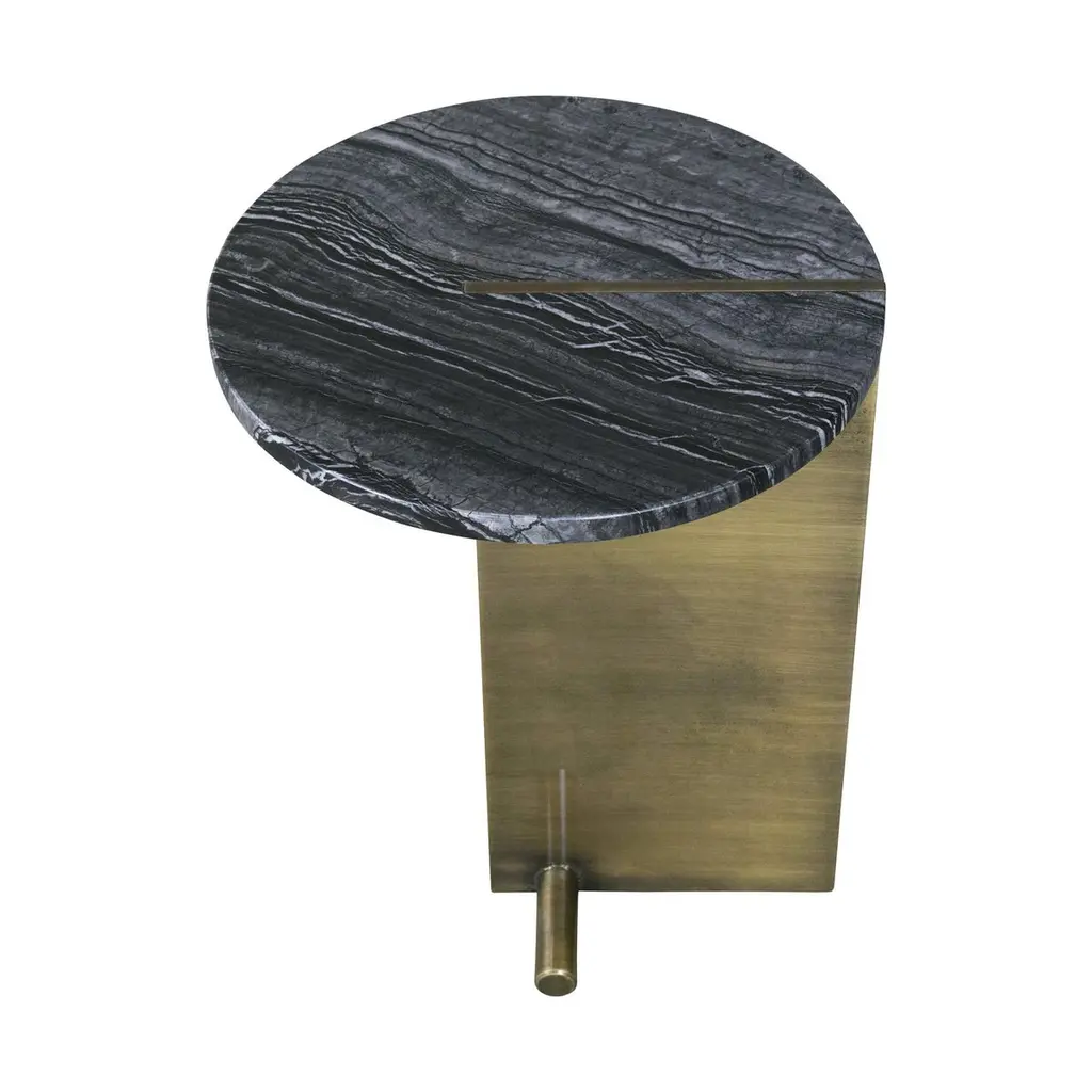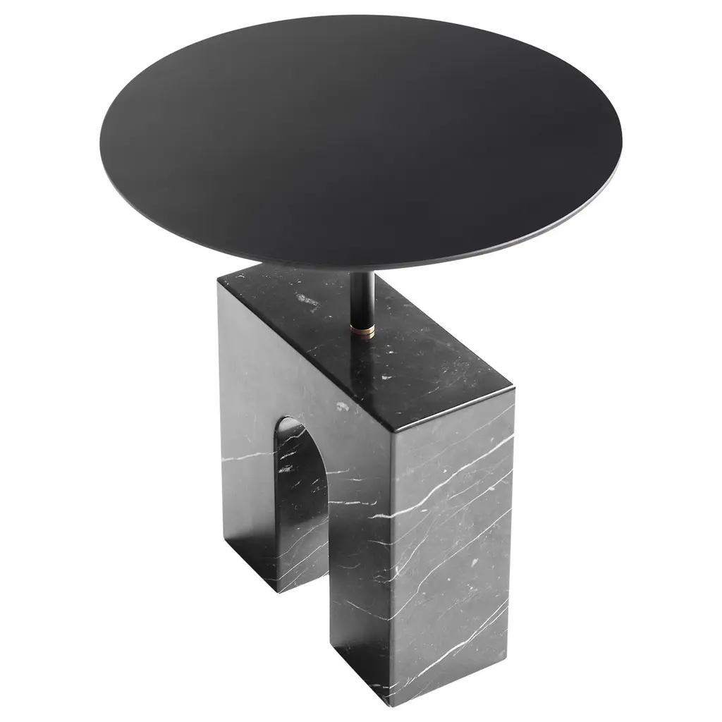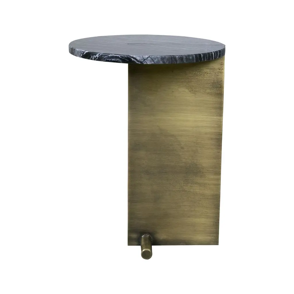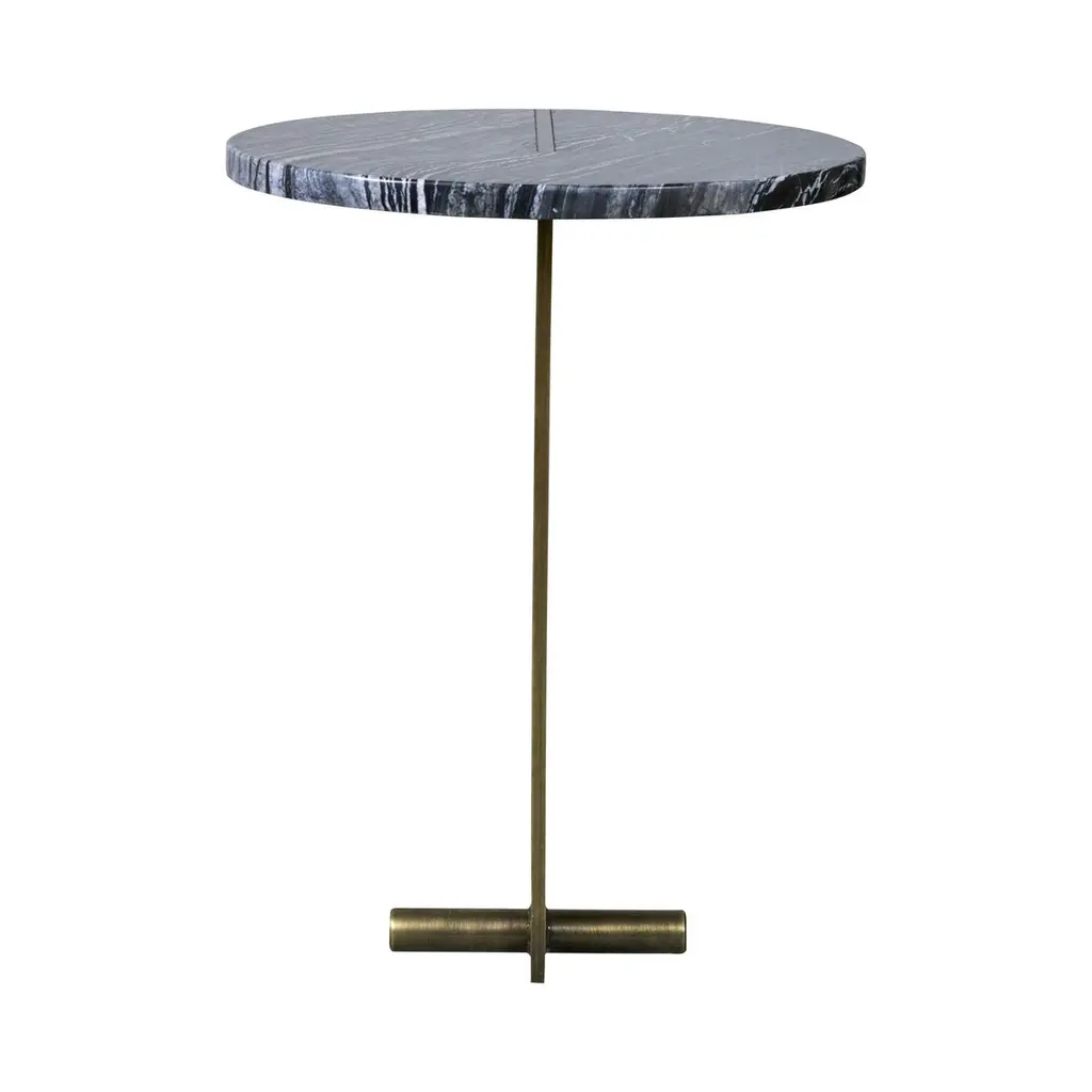 Side table with a round marble top mounted on a modern brass leg. Marble: black, green or whiteCan be customized.