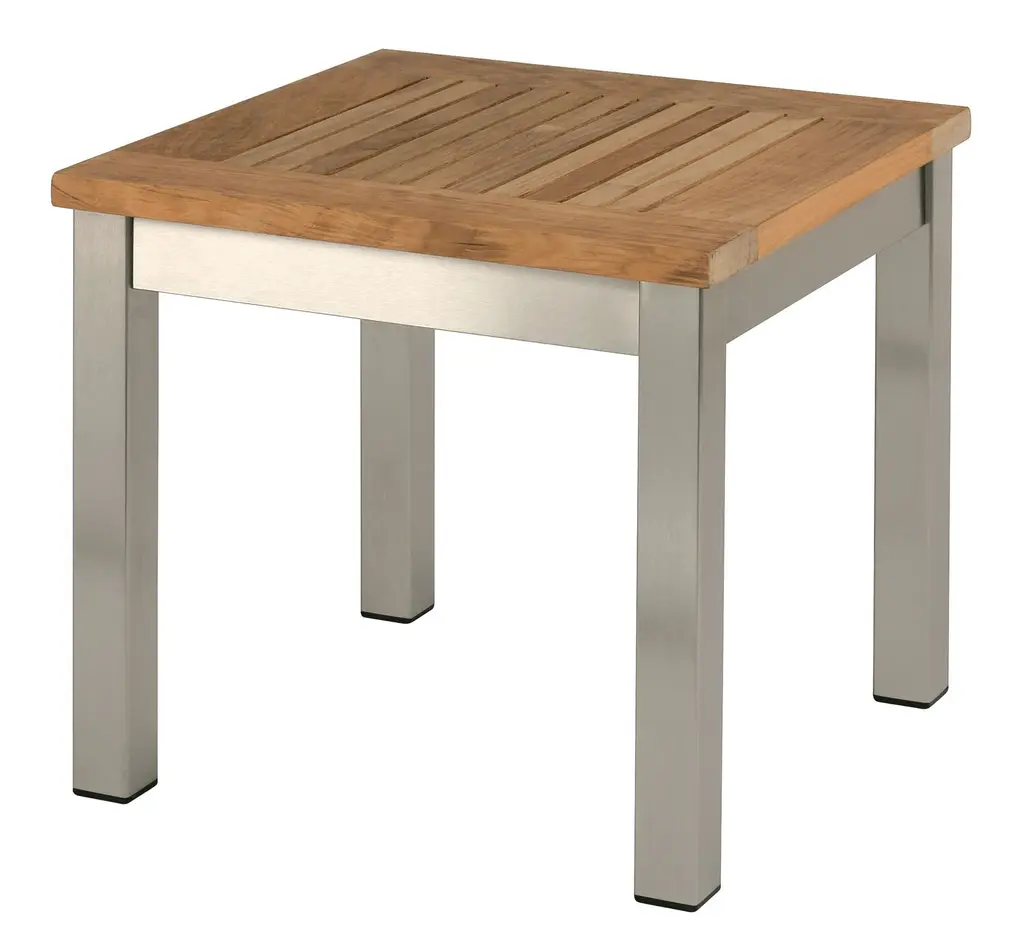 Made from premium 316 grade stainless steel, offers a perfect addition to any modern living space. This table features a teak top bring a warmer, more traditional appearance to this contemporary design. Please Note: Fabrics, canopies, cushions, covers, special order sling colors, and special order finishes are considered customized and may have longer lead times. These items cannot be cancelled, returned, or exchanged.