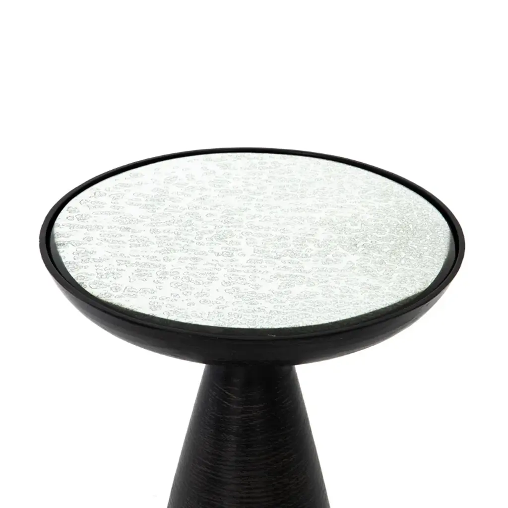 This modern accent table, with its sleek aluminum base and antique mirrored glass top, effortlessly elevates your living space. The unique, reflective surface amplifies natural light, creating an illusion of spaciousness. Place it in your living room or bedroom as a glamorous focal point.