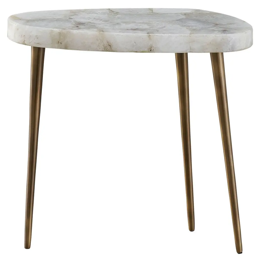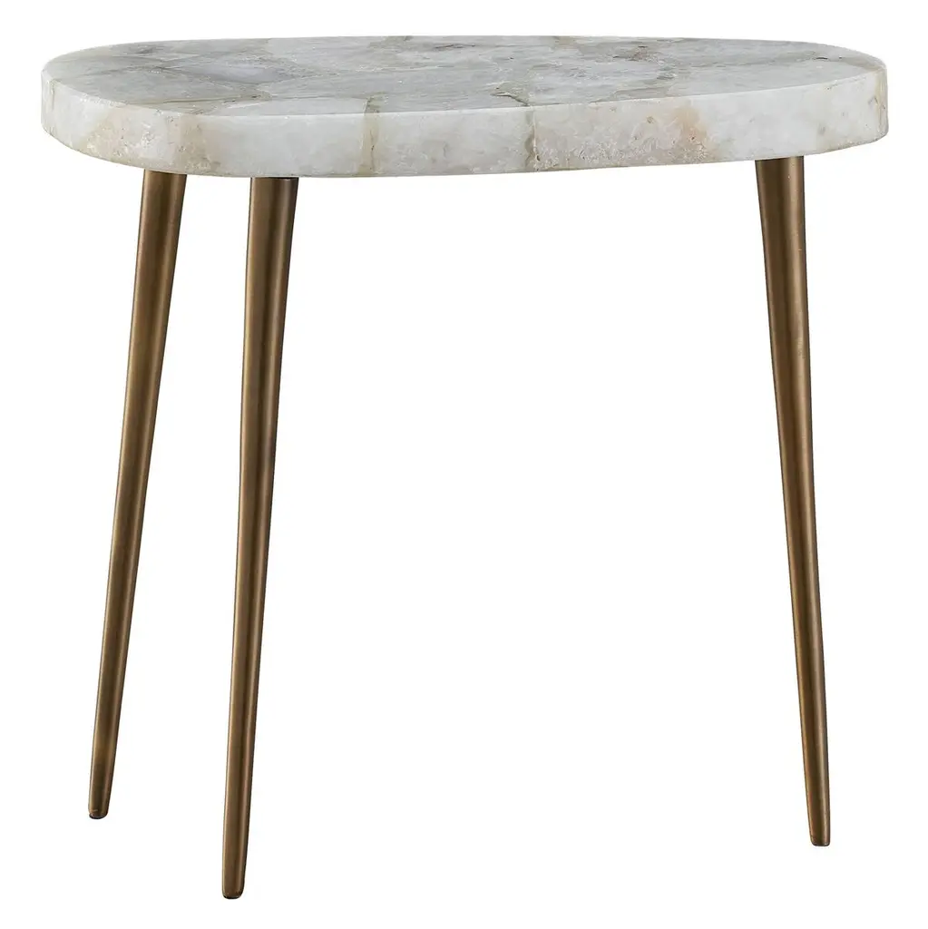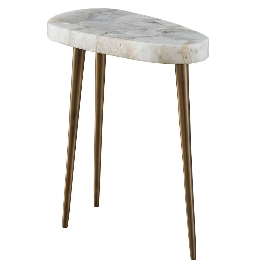Infuse spaces with an elemental elegance. An intricate agate top is offset by sleek antique satin brass legs.