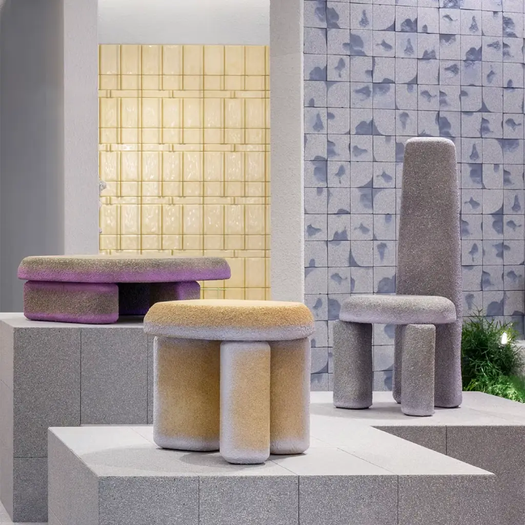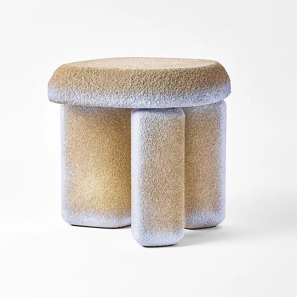 The Lazzaro collection highlights sculptural, almost primitive, primordial volumes. Organic shapes with clear monolithic references. Soft curves and rough surfaces meet in the material finishes obtained by mixing materials of natural origin, applied to the entire surface, capable of giving gradations of multiple layers in a completely definitive form. Custom available and suitable both for living spaces and contract use, indoors and outdoors.