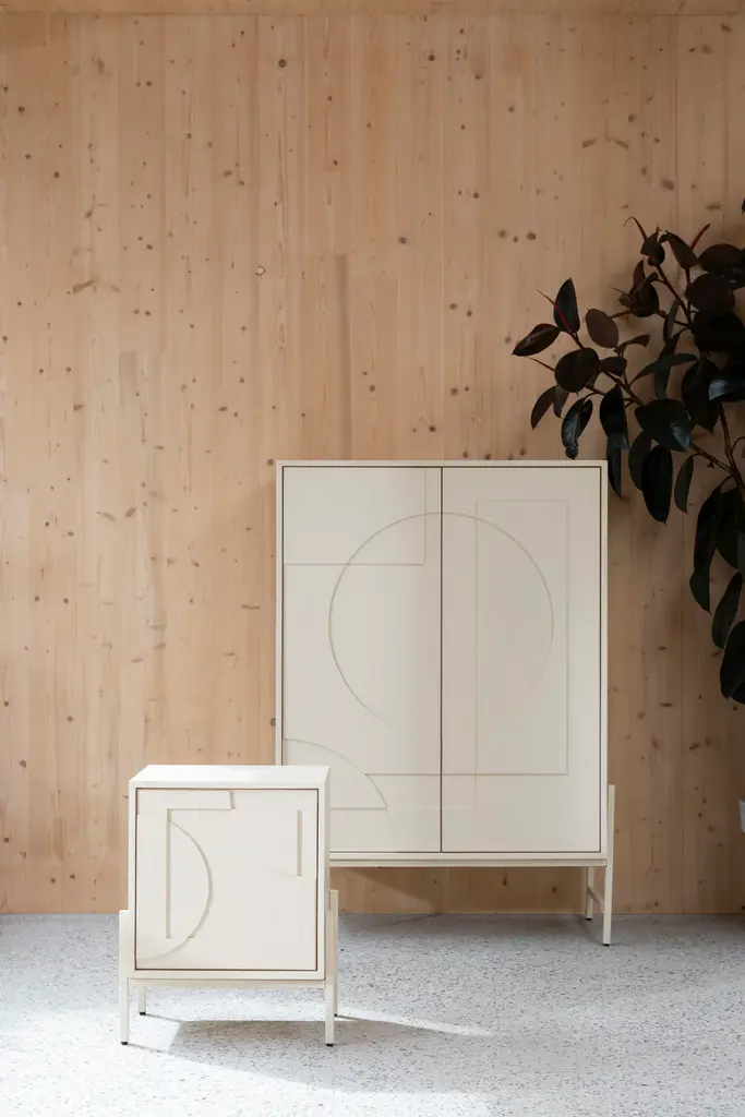 Admire the Faces cabinet just like the unique features of a face. Jette Scheib, the designer we worked with for the cabinets, is fascinated by the heights and depths in the human face that are created by light. The doors are designed with a graphic relief and invite you to touch them. As the light changes throughout the day, so does the appearance of the cabinet. Faces is an eye-catcher and at the same time offers functional storage space. Faces are made of solid oak doors and oak veneer cabinetry. The high matching metal legs provide an airy appearance.