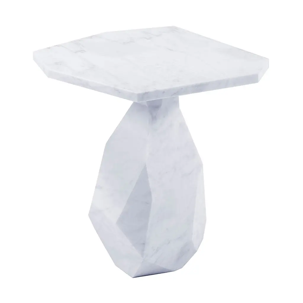 The Belasco Side Table from Noir provides lasting artisanal modern character to interior living areas. Set atop a smooth disc base, its finned column with angular cutaways ascends to a broader disc-shaped base, all made from bianco crown marble. The arresting silhouette transforms the table’s surroundings, catching and redistributing light as needed, creating shadows, and creating a series of naturally veined surfaces that contrast with the pale stone beneath, creating an inspired design.