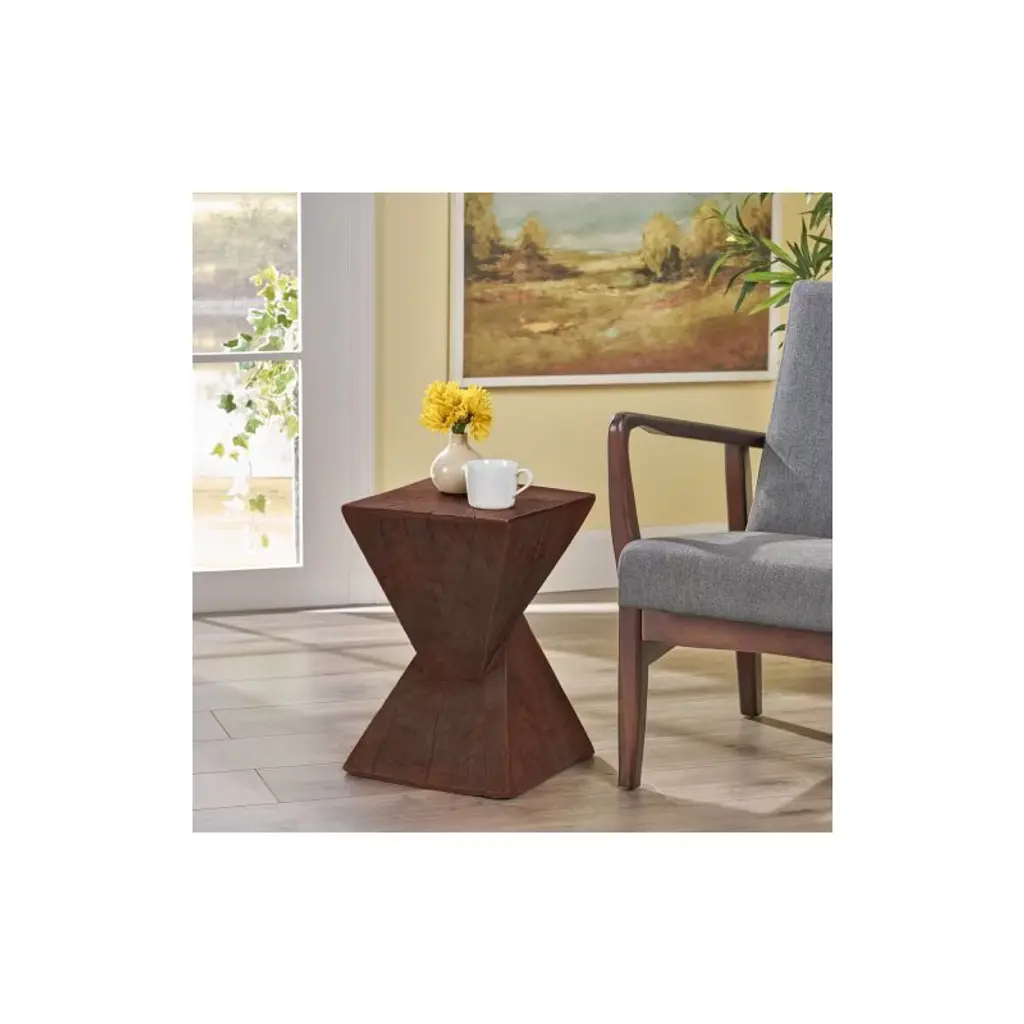 With a sharp frame and sleek lines, our Belize side table is timeless. This small addition will make a strong impact. If you're searching for the perfect decorative accent for your living space, this is it. The Trembesi wood frame is natural and effortlessly chic. Dimensions: 10.0''W x 10.0''D x 17.5''H Finish: Wood (Solid) - Teak - Dark Teak Tear Sheet