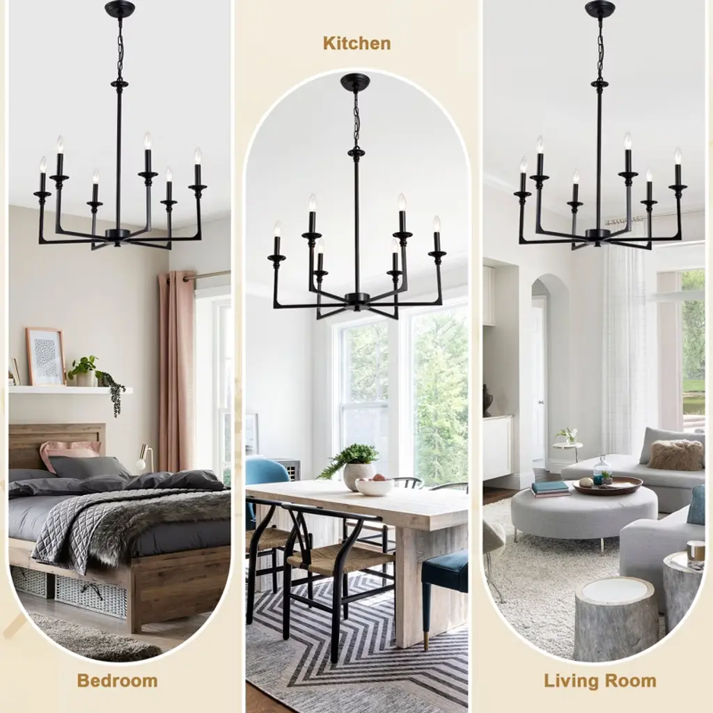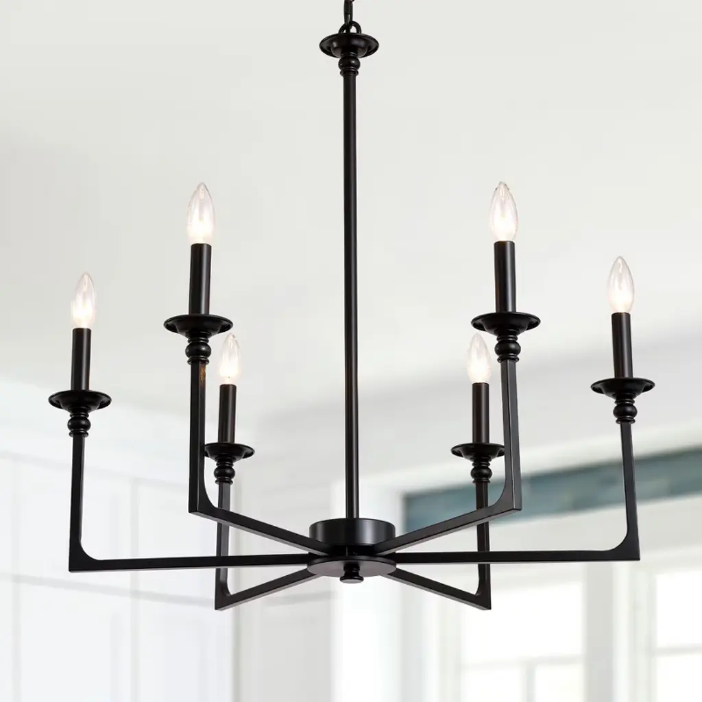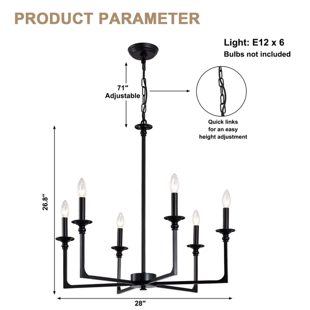 Illuminate your space with the Bella Depot 28" Matte Black Metal 6-Light Pendant! This stunning fixture features a bold, industrial design crafted from durable black metal, making it a perfect fit for various decor styles, including modern and industrial aesthetics. With a generous diameter of 28 inches, this pendant light can accommodate six E12 bulbs (not included), allowing you to customize your lighting to create the perfect ambiance. The included 70¡± adjustable metal chain ensures it can be tailored to fit any ceiling height, making it versatile for any room in your home. Upgrade your lighting game with the Bella Depot Pendant Light¡ªwhere striking design meets functionality!