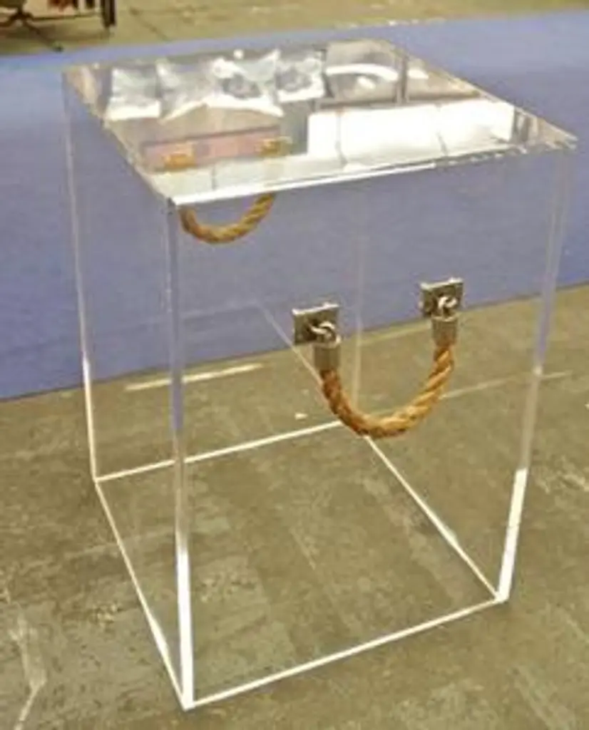 The Bella Side Table in Tall from Jamie Dietrich features rope handles for easy movement. The tall height of this unique table is ideal for the living room or bedroom. Rope handles keep this glamorous piece balanced with a rustic touch. Construction of the thick box is open at the bottom, allowing the opportunity for inside display. Dimensions: 18"H x 18"D x 36"W Materials: Tibetan Lamp, Lucite Special Order - Please allow 4-6 weeks. This item includes free white glove delivery and assembly in the room of your choice!