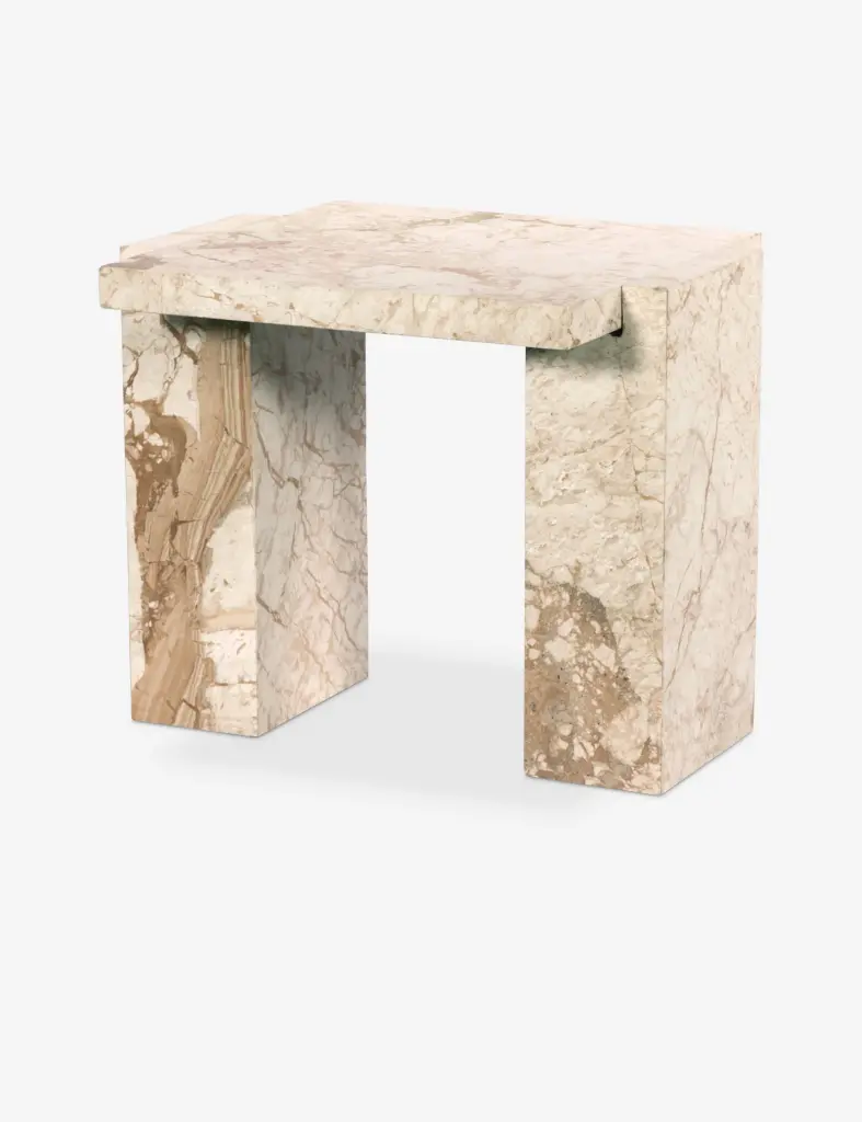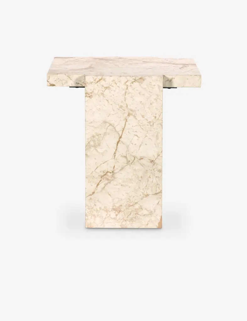 The Bellona side table offers a simple touch of polish. Solid marble sheets cradle the thick top with a classical poise. Due to the natural variations in the veining of the marble, each end table is unique—perfect for bringing a sophisticated finish to a home office or living room.
