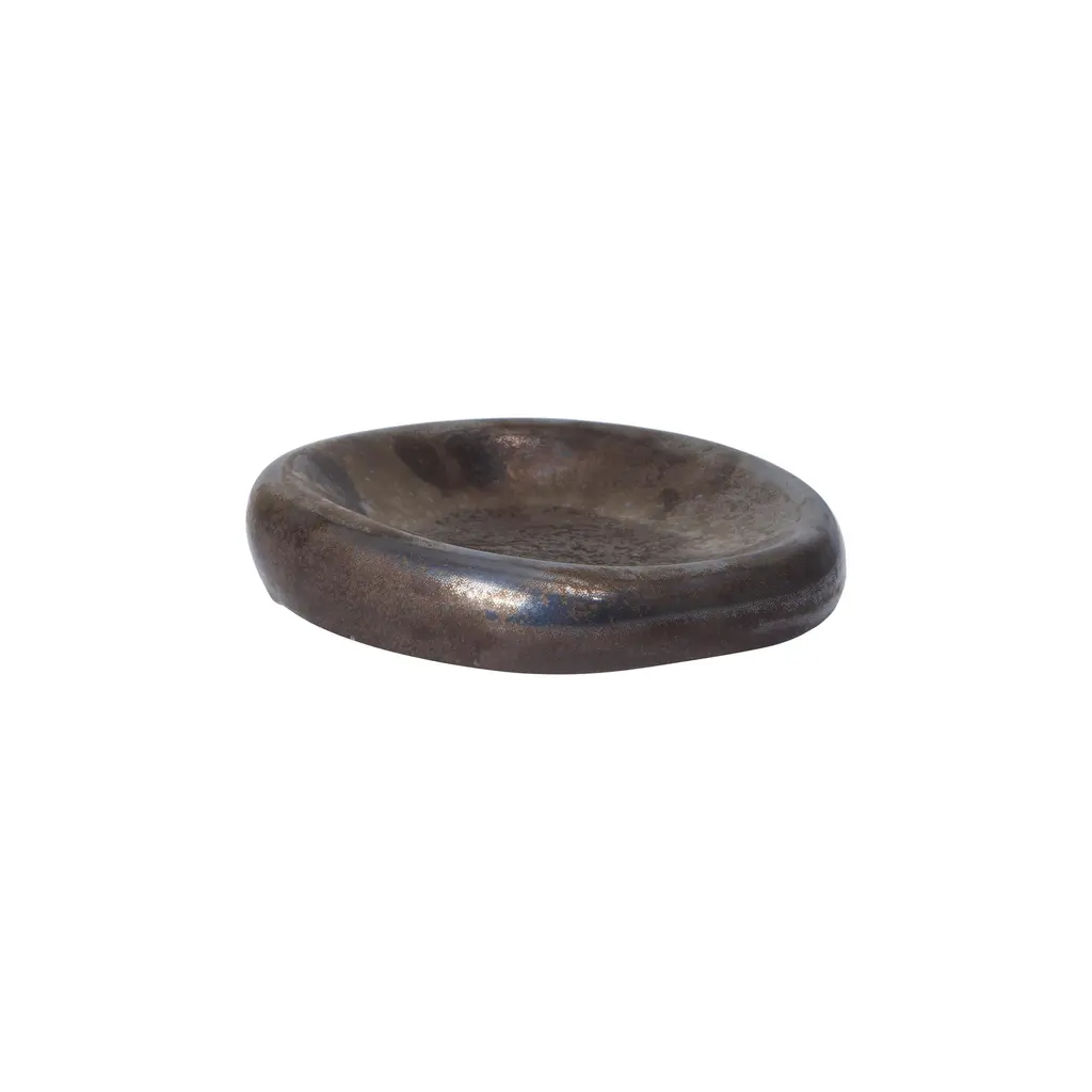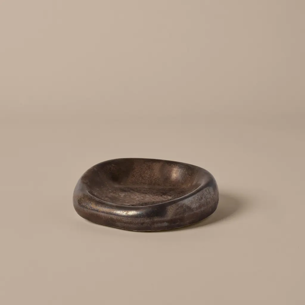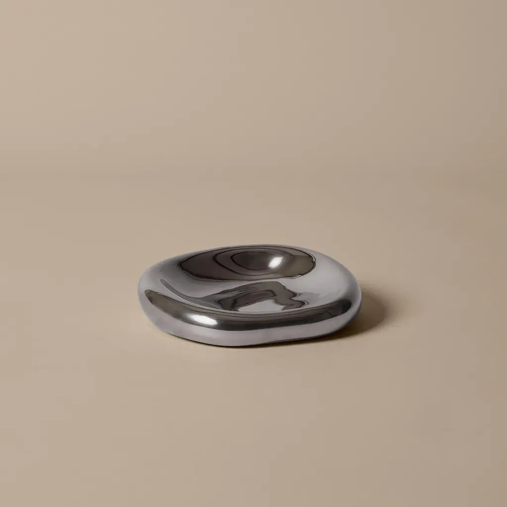 The Bellure Ashtray takes a soft, pebble-like dish and gives it real mass. The center dips so ash gathers where you want it, while the low rim makes for an easy tap-out. Heavy in the hand. Quiet on a table. You notice the finish options more than the form: Silver is electroplated stoneware with a mirror sheen that reflects light and surroundings; Rustic Bronze is a reactive glaze with subtle tonal shifts that feel warmer and more relaxed. Both are smooth to the touch with a rounded base that won’t snag fabric when you slide it across a surface. Everyday use is simple—keep it on the coffee table, bar cart, or patio side table. The 7.01″ width gives enough landing space for cigarettes and slim cigars, and when guests aren’t smoking it doubles as a small catchall for matches, a lighter, or keys. At just 1.69″ tall, it reads low and discreet; the 1.1 lb weight keeps it stable if you bump the table. Hand-wash and dry; finishes will vary slightly from piece to piece.