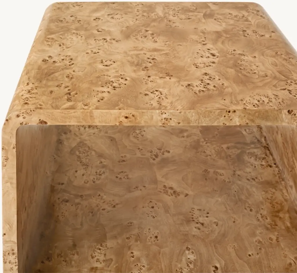 An homage to French Art Deco design, our collection by the Van Thiels celebrates the era's streamlined elegance and its use of luxurious, often exotic materials. The bold geometric silhouettes with waterfall corners are wrapped in mappa burl wood veneers, which are meticulously pieced and finished by hand to a matte, subtle luster that highlights the grain's swirling patterns. SHOP THE ENTIRE COLLECTION