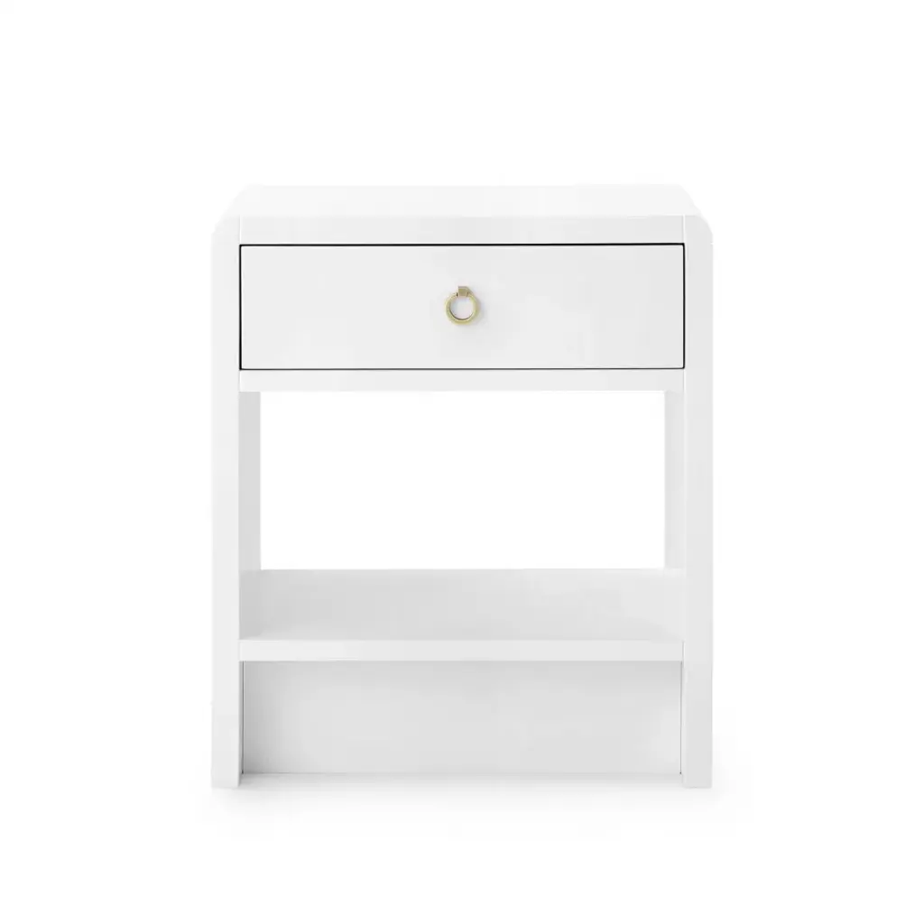 Form and function come together flawlessly in the Benjamin 1-Drawer Side Table. Its structural silhouette is refined by clean lines and an inherent sense of airiness, making it a modern pick that’s versatile enough to complement any style of decor. A floating top drawer on our signature soft-closing glides hovers above an open base, creating a built-in box-like frame for a decorative statue or stack of your favorite books. The piece is executed in lacquered linen with a white, smooth finish and distinctive soft edges, which, combined with an antique brass pull, elevate its aesthetic from simple to sophisticated. Whether standing solo or paired on each side of a bed or sofa, the Benjamin is sure to complete your room.