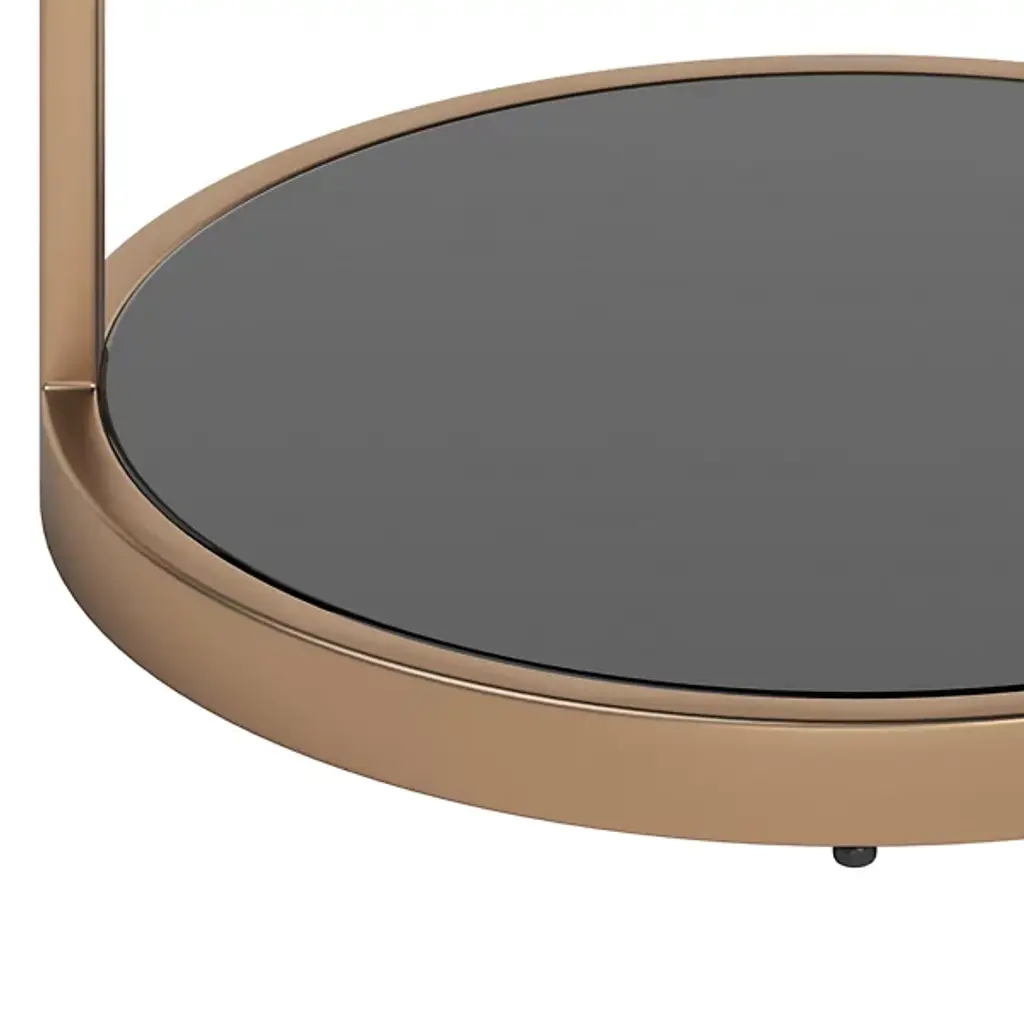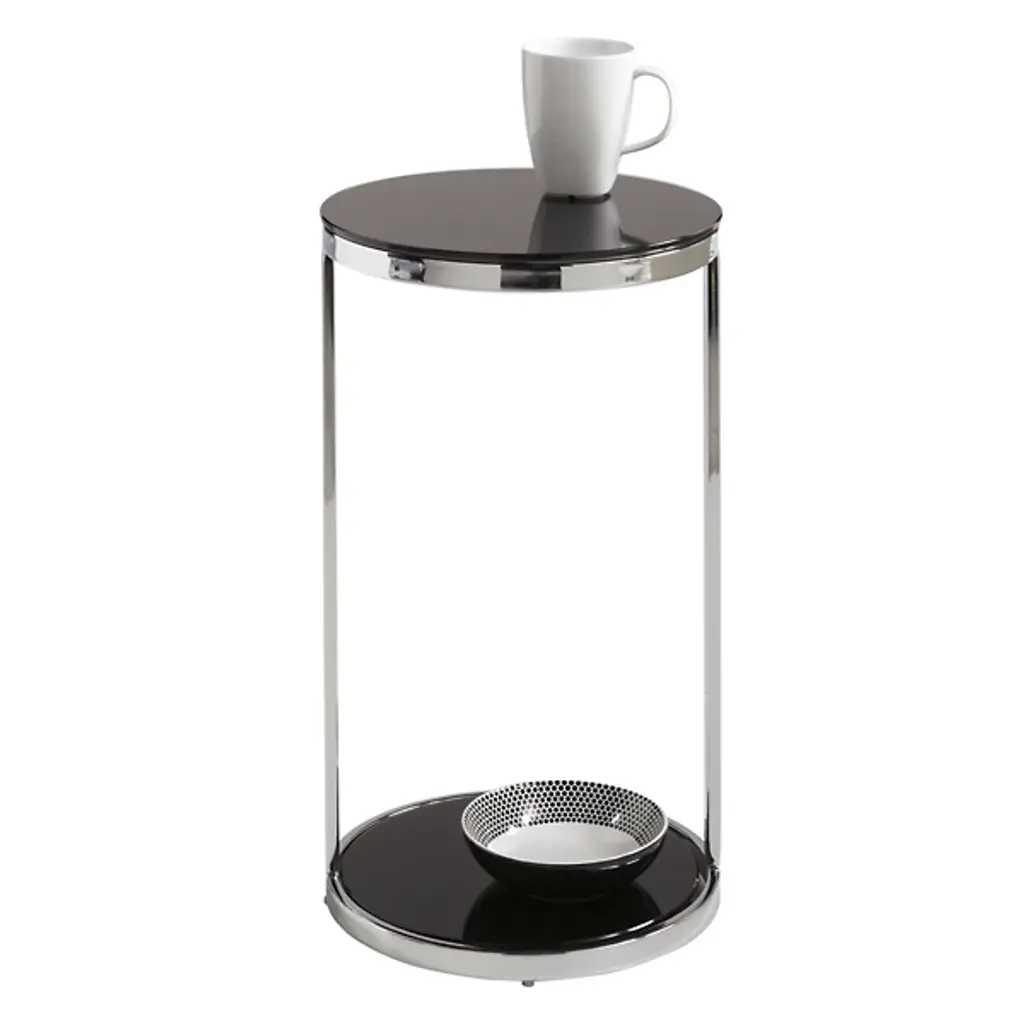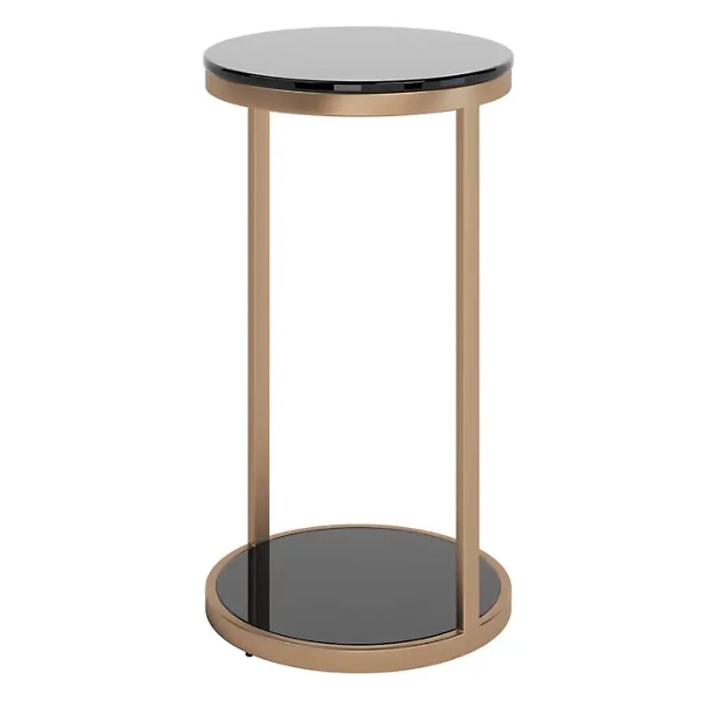 Introducing the Benjamin End Table from Sunpan. Crafted with a contemporary sensibility, this sleek and space-saving end table showcases tempered black glass atop a smooth steel base, sending up slender bracket bracing to a matching, taller tabletop above the base. Ideal for smaller areas, it seamlessly fits into a range of settings, elevating the space around it, perfect for those who appreciate a contemporary touch while drawing the eye with a contrast of materials.