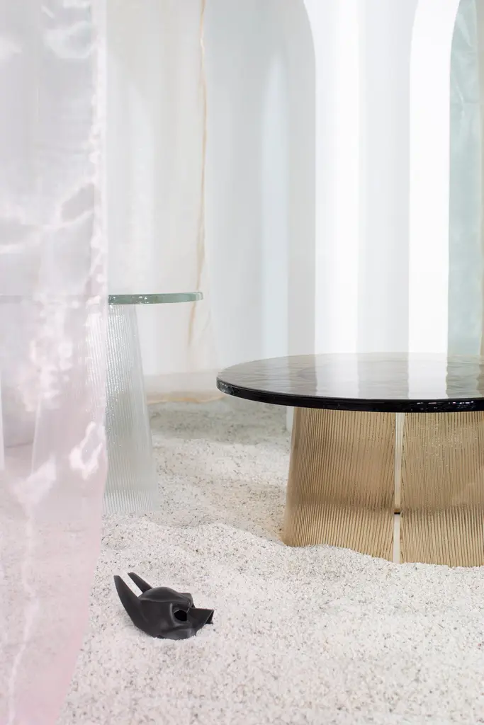 Bent side table big smoky grey by PulpoDimensions: D 75 x H 35 cmMaterials: Casted glass.Also available in different finishes and dimensions.The bubbled surface of the cast glass table top dances against with the smooth lines of the fluted cast glass base. The bent side table expresses the beauty of glass in all its forms. With a striking simplicity, this interior companion has the ability to blend in or the centre of attention.Pulpo is a design editor for high-end products in the home sector.Design is our passion. Art is our engine. We are fascinated by the Craft of the ceramic and glassblowing workshops and are guided by the rough aesthetics of these unique pieces.Pulpo’s philosophy goes back to the IDEA of ??the “carte blanche”. Our designers and artists develop their designs freely and experimentally. A variety of materials and a weakness for structures are our strengths.The headquarters of pulpo is in Weil am Rhein, near the Swiss border. Consisting of the creative and sales department, warehouse and logistics, this is the think tank for our artists and designers. pulpo’s dealer network extends far beyond Weil am Rhein – from Iceland and Dubai to Australia.Pulpo is movement – is possibility – is passion.In 2006, pulpo was founded by Ursula and Patrick L’hoste as a design brand at the interface between shape and Material. pulpo’s conception is to edit lighting, furniture and accessoires on editor’s choice. The company’s focus is to conduct up-and-coming designers and selected manufacturers, using the nature of Material’s to form the score. Materials such as ceramics, stone and especially glass, which is pulpo’s primary focus since 2013.
