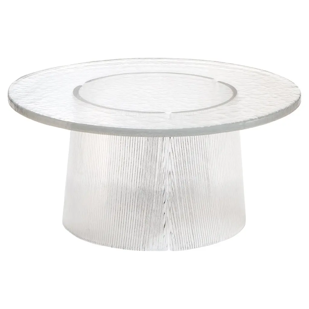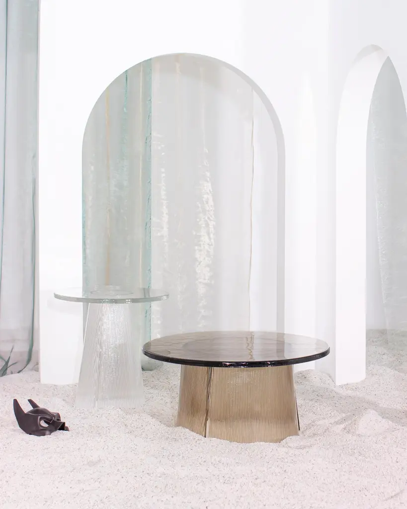 Bent side table big smoky grey by PulpoDimensions: D 75 x H 35 cmMaterials: casted glassAlso available in different finishes and dimensions.The bubbled surface of the cast glass table top dances against with the smooth lines of the fluted cast glass base. The bent side table expresses the beauty of glass in all its forms. With a striking simplicity, this interior companion has the ability to blend in or the centre of attention.Pulpo is a design editor for high-end products in the home sector.Design is our passion. Art is our engine. We are fascinated by the craft of the ceramic and glassblowing workshops and are guided by the rough aesthetics of these unique pieces.Pulpo’s philosophy goes back to the idea of ??the “carte blanche”. Our designers and artists develop their designs freely and experimentally. A variety of materials and a weakness for structures are our strengths.The headquarters of pulpo is in Weil am Rhein, near the Swiss border. Consisting of the creative and sales department, warehouse and logistics, this is the think tank for our artists and designers. pulpo’s dealer network extends far beyond Weil am Rhein – from Iceland and Dubai to Australia.Pulpo is movement – is possibility – is passion.In 2006, pulpo was founded by Ursula and Patrick L’hoste as a design brand at the interface between shape and material. pulpo’s conception is to edit lighting, furniture and accessoires on editor’s choice. The company’s focus is to conduct up-and-coming designers and selected manufacturers, using the nature of material’s to form the score. Materials such as ceramics, stone and especially glass, which is pulpo’s primary focus since 2013.