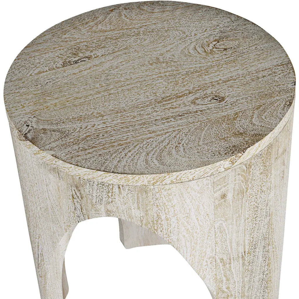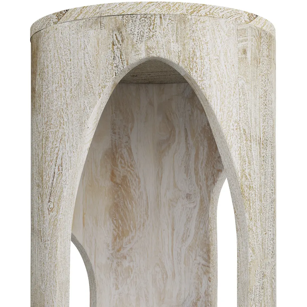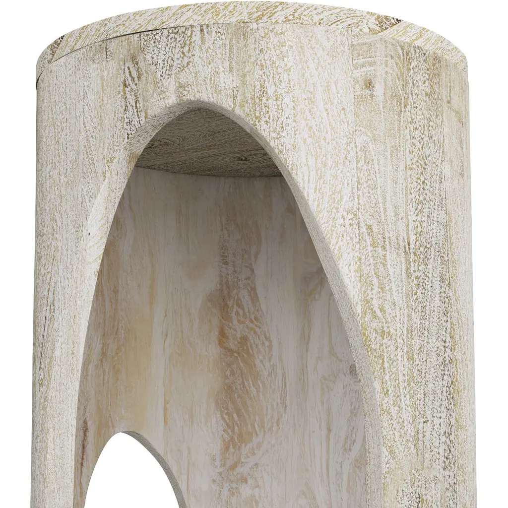 Organic in both inspiration and material, the structure of this essential end table is inspired by the erosion of sea caves by endlessly breaking waves. Crafted of mango wood, the Berlof features free-flowing cutouts that add interest to its subtle form. Finished in a soft white wash.?Finish will vary.