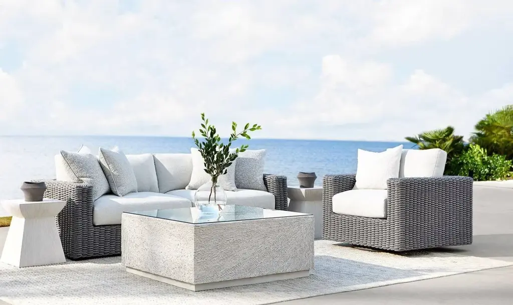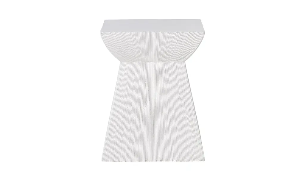 "ItŐs your space, your rules. Why not fill it out with pieces that scream ÔYOUŐ? Bernhardt Casitas accent table in white is a one-of-a-kind table that adds that personal touch that cookie-cutter furniture just canŐt.Irregularly shaped tables can fit into spaces where standard tables cannot, making them versatile and practical. This accent table features a smooth square stone top and a rattan-textured tapered pedestal case bottom. Thus, it showcases a unique natural stonecast design. Plus, the bottom creates visual interest against smoother surfaces like wood or metal furniture. The polyurethane protective top coat ensures durability, so you can place whatever you want on the table's surface. While those adjustable glides provide stability on any surface, This works if you use it outdoors, where the surface can be unstable.Either place it beside your sofas or chairs, or make it serve as your coffee table in the center of your seating area. Or, simply pair it with outdoor seating to create a cozy and inviting atmosphere; this table will do its job perfectly."