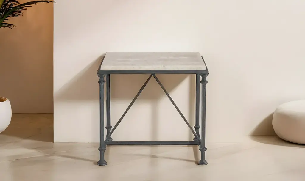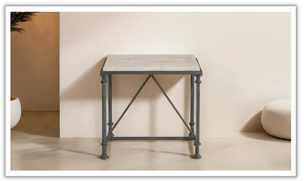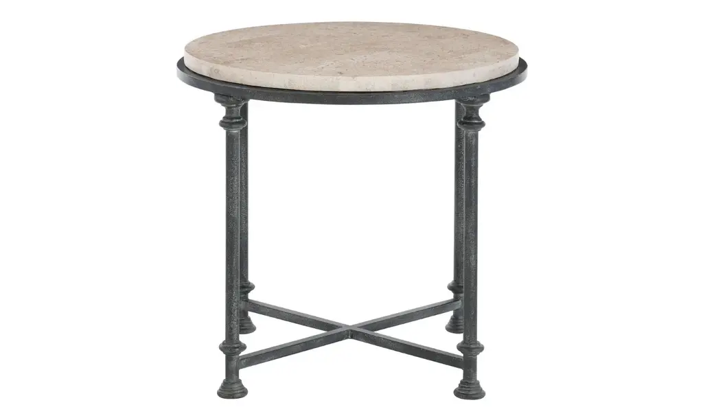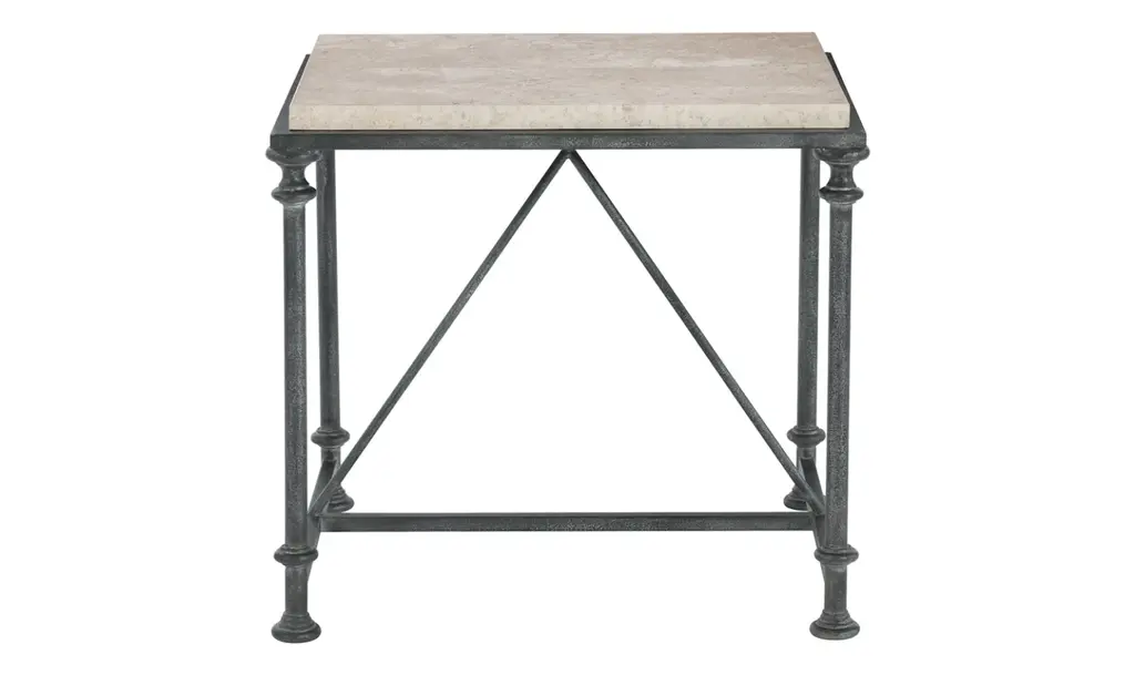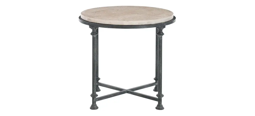 You can't beat a standout piece like the Bernhardt Galesbury End Table. ItŐs packing some serious stylish and functional vibes that make it a must-have. With a classic shape, this end table provides surface area for placing anything from drinks and snacks to decorative items and coffee table books.The laminated, honed travertine stone top is one of a kind, and it's not just about looks; it's durable and gives your space a high-end feel. Thanks to its solid and tubular steel base. ItŐs not only built to last but also ensures that this table is sturdy and ready to handle anything. The stretchers in an antique silver finish tie the whole design together. Say goodbye to wobbling with the adjustable glides that let you easily level the table on any surface, keeping everything stable and secure. This cocktail table goes beyond being just furniture; it's a centerpiece and perfectly fits any entertaining space. No assembly is required. Take it from us: this end table is a total game-changer.