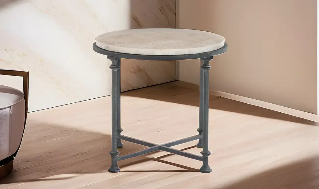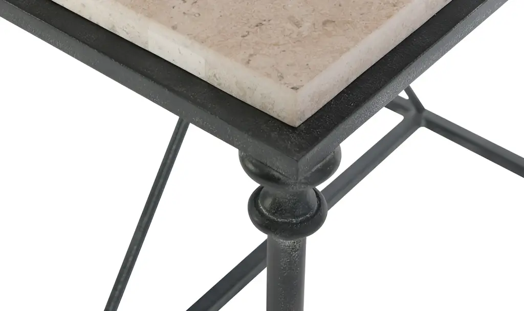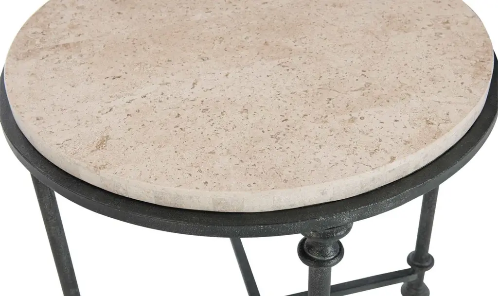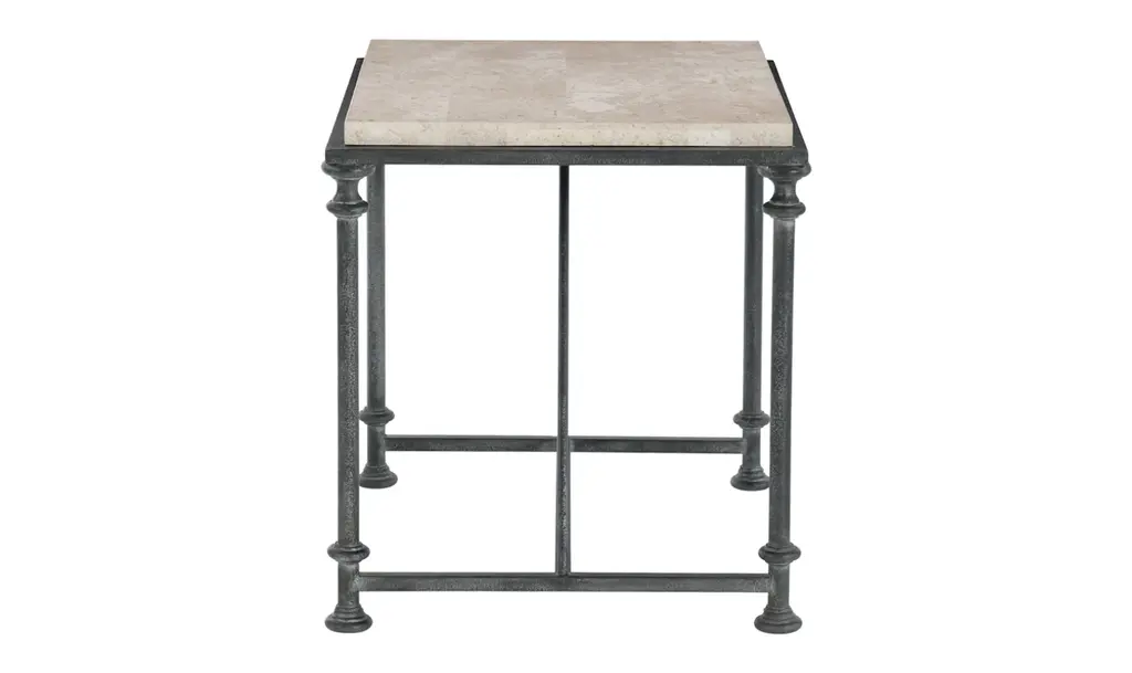 You can't beat a standout piece like the Bernhardt Galesbury End Table. ItŐs packing some serious stylish and functional vibes that make it a must-have. With a classic shape, this end table provides surface area for placing anything from drinks and snacks to decorative items and coffee table books.The laminated, honed travertine stone top is one of a kind, and it's not just about looks; it's durable and gives your space a high-end feel. Thanks to its solid and tubular steel base. ItŐs not only built to last but also ensures that this table is sturdy and ready to handle anything. The stretchers in an antique silver finish tie the whole design together. Say goodbye to wobbling with the adjustable glides that let you easily level the table on any surface, keeping everything stable and secure. This cocktail table goes beyond being just furniture; it's a centerpiece and perfectly fits any entertaining space. No assembly is required. Take it from us: this end table is a total game-changer.