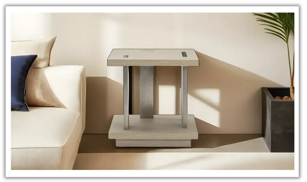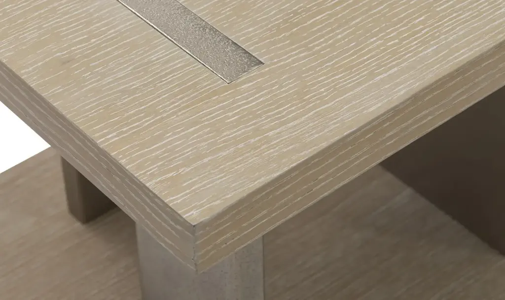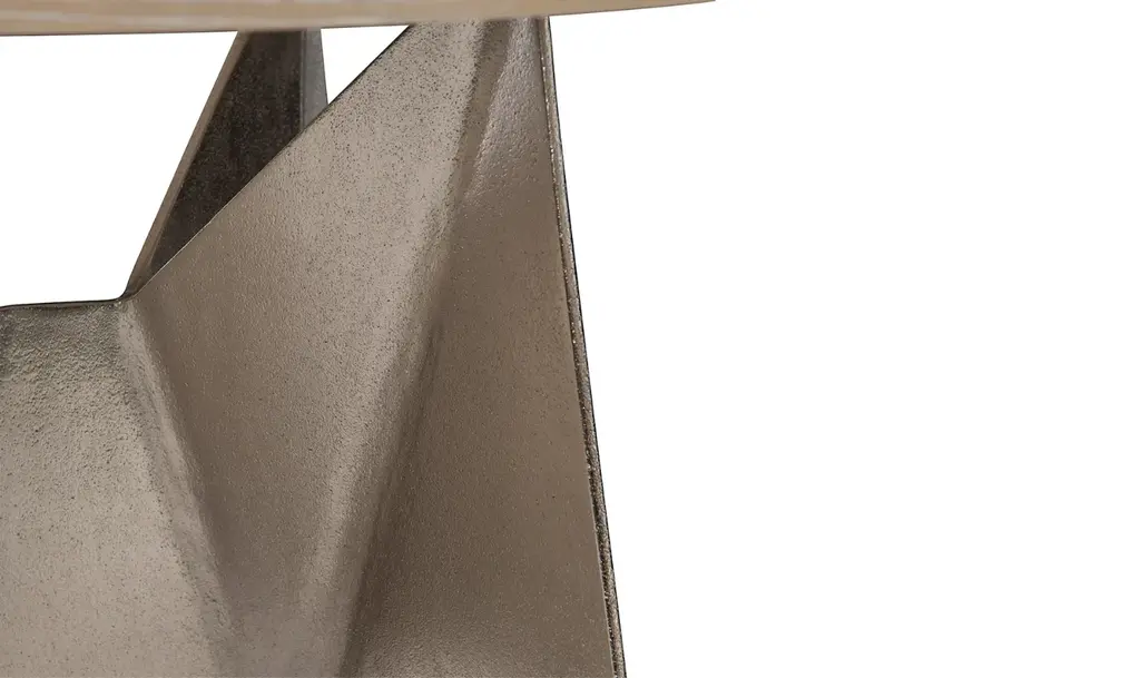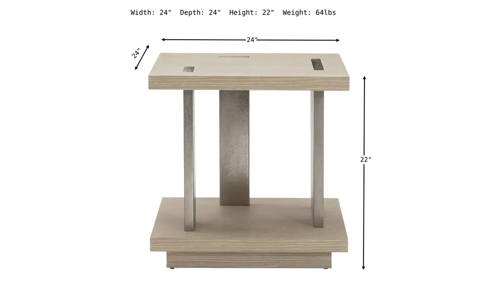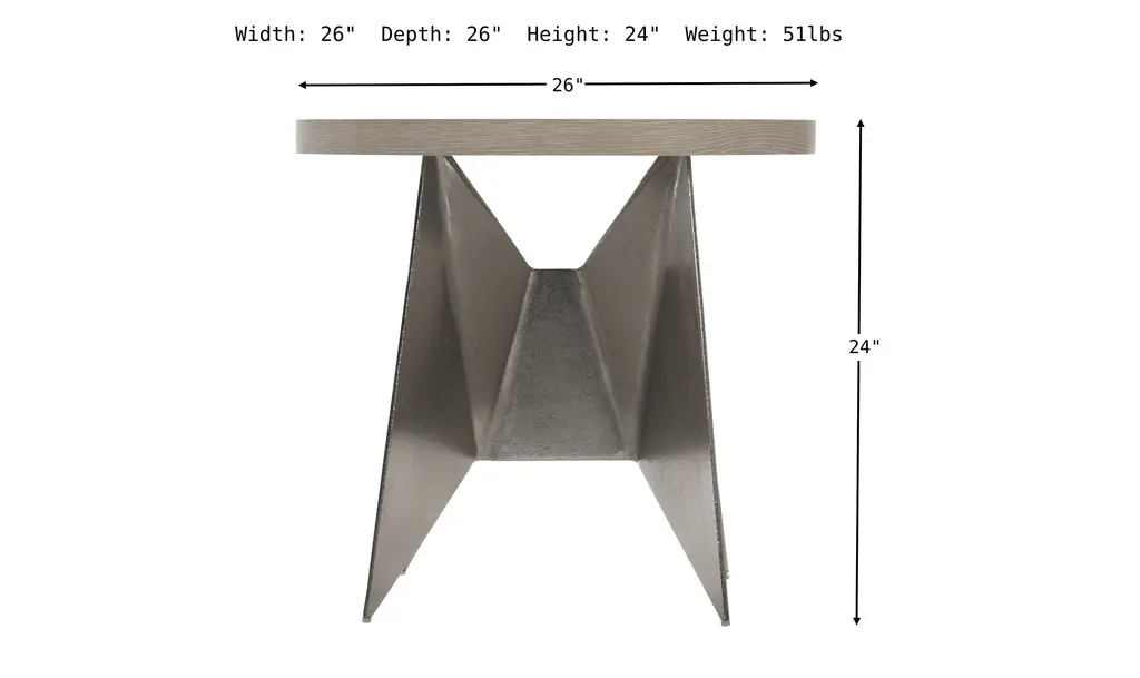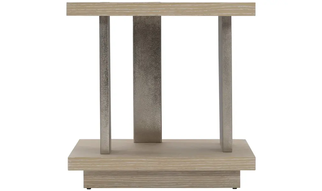 Introducing the Bernhardt Solaria2 Side Table, a masterful fusion of modern style and fine craftsmanship. The distinctive design of this side table sets it apart, with varying-sized cast aluminum pieces that offer strong support and eye-catching visual interest. In addition to serving as supports, the panels pierce through the oak top to create a complex inlaid design that elevates any living area. The base and tabletop are made of veneers cut from quartered white wood, and they have a sophisticated Dune finish that has a cozy, organic look. Sturdiness and longevity are ensured by the solid plinth and hardwood base. The metal components, which include top inserts finished in polished nickel and cast aluminum support leg panels, highlight the design. In contrast to the warmth inherent in the wood, these metal elements add a sleek, contemporary look. To complete the look of the table, the Solaria2 Side Table also has a geometric cast aluminum base that is polished to a bright nickel finish. The table has movable glides that ensure it stays level on any surface, adding to its convenience. The Bernhardt Solaria2 Side Table is ideal for modern or contemporary settings since it is more than just a piece of furnitureŃit is a declaration of quality and style. This gorgeous side table will add a touch of art and usefulness to your living area.