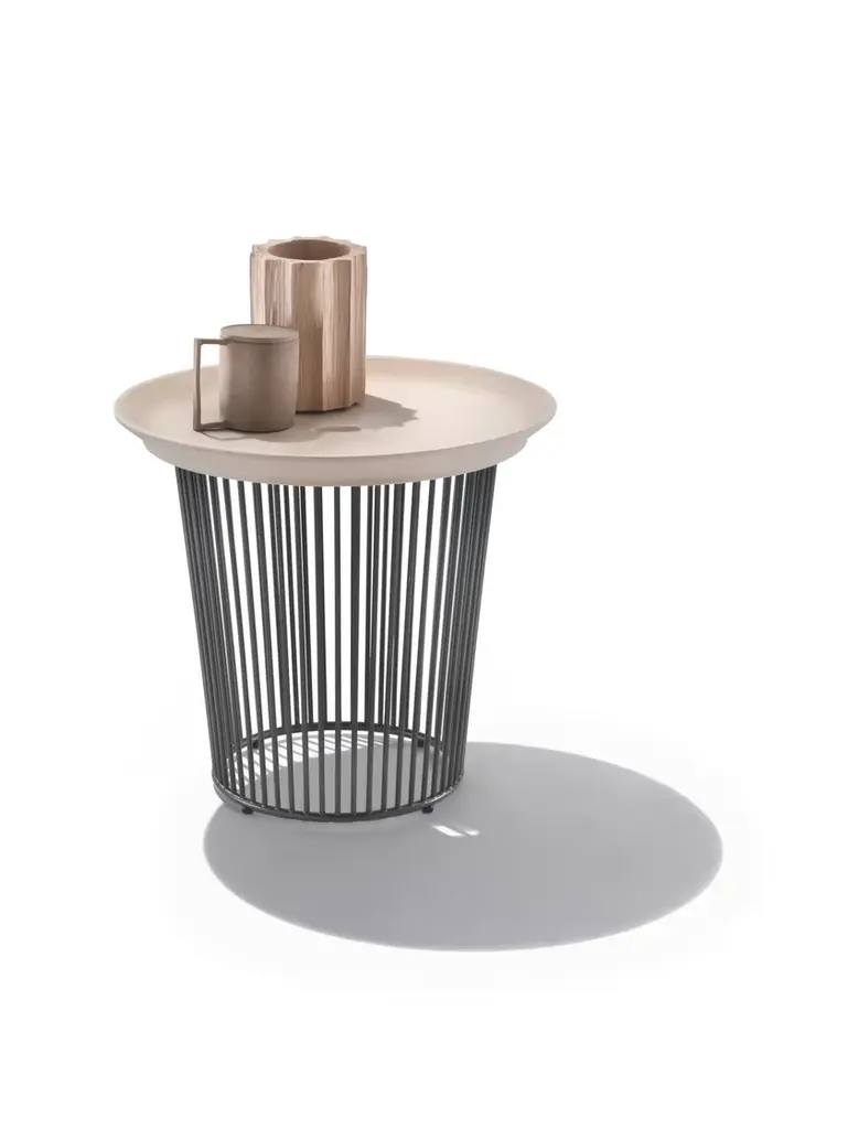 An innovative combination of materials sets apart the versatile Berry Outdoor family of coffee and side tables.The stainless-steel structure with epoxy powder-coat finish, available in an array of sophisticated colors, is paired with tops in ceramic stoneware, a composite material with excellent performance in outdoor settings.A hole in the center of the top allows rainwater to drain off.TECHNICAL SPECIFICATIONSStructure in electropolished 304 stainless steel; or, with epoxy powder-coat finish in white 100, wine red 405, or khaki green 705; burnished; or with embossed lacquered finish in white 300, sand 310, brick 320 and sage green 330Ceramic top in the following colors: oat, oyster, grey-blue, moss green or brickFeet rest on tips made of thermoplastic materialCover in water-repellent material. Cover is upon request, with upcharge.