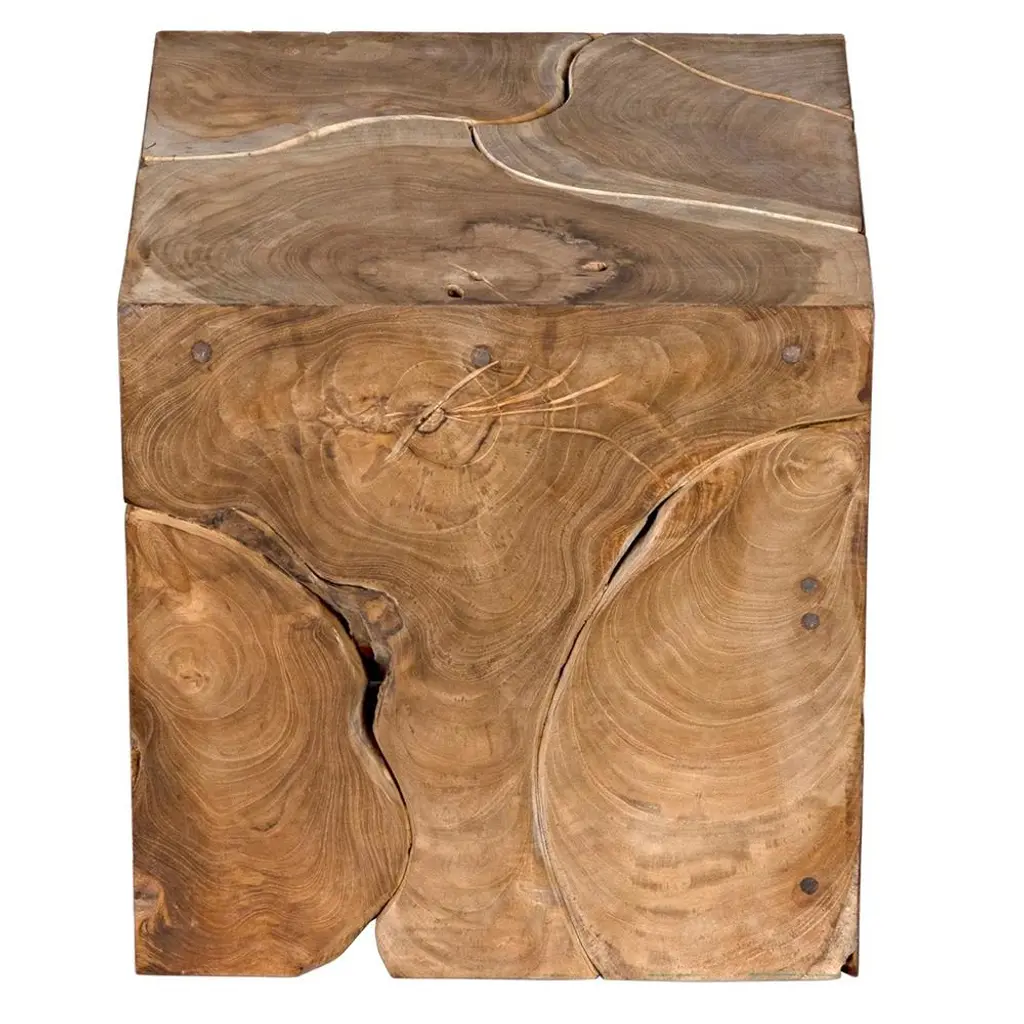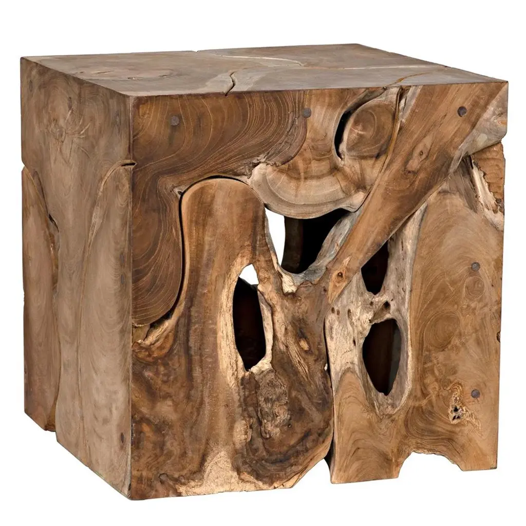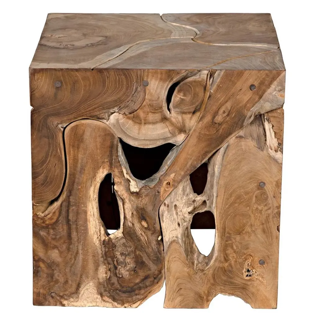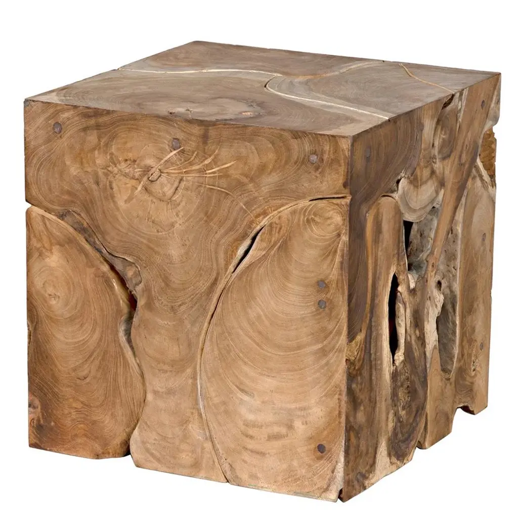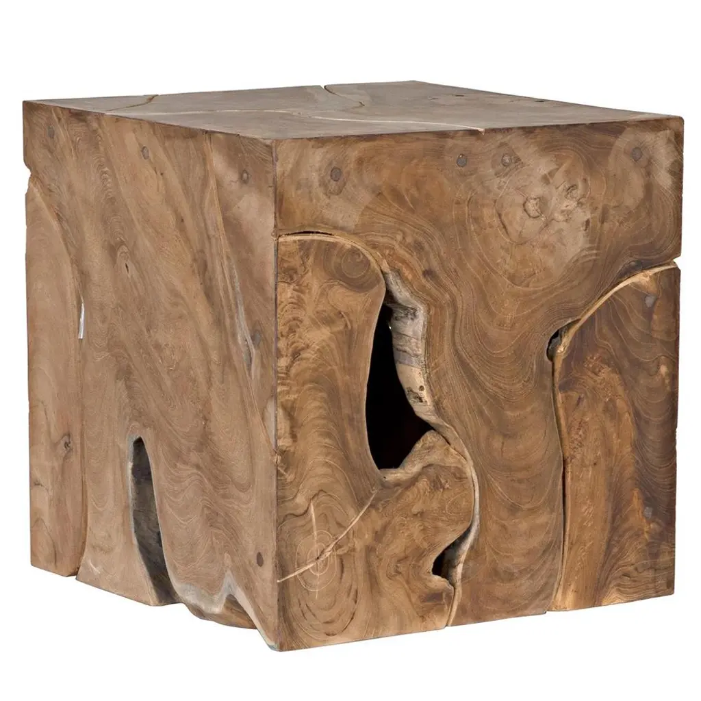 Bert Rustic Lodge Teak Wood Cube Side Table
