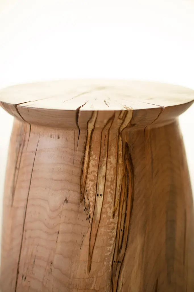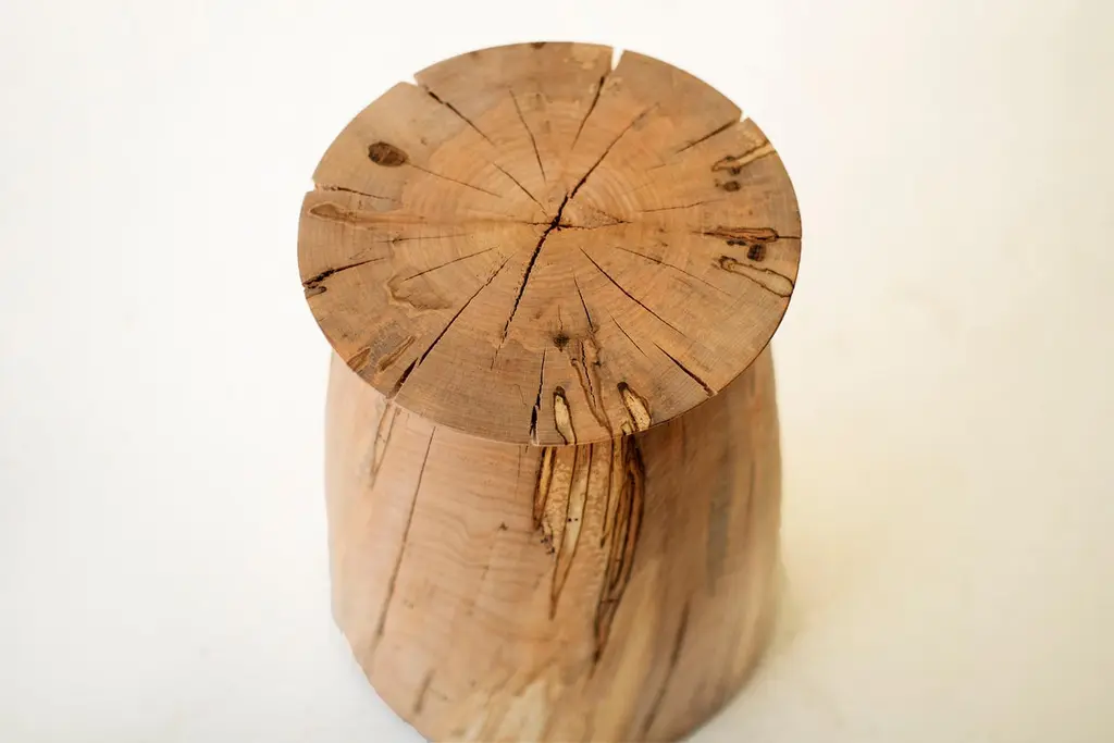 Please scroll down to read IMPORTANT INSTRUCTIONS ABOUT OUR STUMPS before purchase!Why buy BERTU HOME stumps?KILN DRIEDOur stumps all go through a drying process in our kiln, sometimes for up to a month. We are meticulous with bringing each and every log to a specific moisture level. This process helps with major cracking, long-term moisture issues, and bugs.ECO FRIENDLYIn an effort to replenish the trees we use, we plant 50+ trees a year. In addition, we practice salvage logging. Where do we source these? Some of the trees fall naturally. Some have damage from severe wind, lightning, flood, disease, or other natural disturbance so they need to be cut and removed before they fall. Others are fresh cut because people want them off their land. Salvage logging may reduce erosion, reduce intensity of future wildfires, and slow buildup of pest insects.FAMILY OWNEDThese are made from our family to yours. Quality is of utmost importance, and we hand cut, de-bark, sand, and finish every piece with care. See how we do it here.COMMERCIAL GRADEThese stumps are meant to be loved and USED. Each is finished with a durable commercial-grade finish. This finish is tough enough for spills, kids, and holds up in hotel and hospitality settings.PLEASE NOTE : These stumps will age naturally, and even more so being outdoors and exposed to the elements. Each is a solid log with its own unique character so we can not guarantee the finish won't fade or discolor as this varies per climate and log.This Solid End Table - Brinx in Natural is made in the heart of Ohio with locally sourced wood. The stump can be used for a side table, a dining height stool, or grouped together for a larger architectural table. Each stool is made from a solid trunk of maple and is beautifully hand sculpted. Each piece is hand sawed, sanded, and sprayed with a commercial grade "Aged" finish. Other finish colors available! Every part of the process is handled with care to honor the unique markings of each tree. PLEASE NOTE: THESE ARE PRONE TO CRACKING. WE LOVE THE LOOK BUT THESE DEFINITELY ARE NOT FOR THE PERSON WHO WANTS A PERFECT PIECE.... LOTS OF CHARACTER. Cracks can even be as big as 1/2" wide due to proper drying in our kiln. The idea is that most of the cracking happens before it is sprayed, shipped, and in its new home. These are all slightly different in character and they may vary in size - No two pieces are exactly alike. Our team and clients absolutely love these."I love natural elements. I'm inspired by them and I love being surrounded by them. I also love modern furniture and accessories. When thinking of new products a few years back, I wanted to do a modern twist on something considered rustic and "country".Thus the whitewash stump table was born! It's important to our family to not only design and manufacture beautiful things, but to provide the best quality and experience. There is a lot of love that goes into each stump, as we hand pick and finish each one per order. Add a little piece of nature to your home in a modern way!" -- Gretta Jones // Bertu HomeIMPORTANT INFORMATION ABOUT OUR STUMPS...1. Please unpack your stump immediately and leave it out of any packaging. These are real pieces of wood and need to breathe!2. For OUTDOOR stumps : Though these are kiln dried and the wood can be used outdoors, sometimes when they arrive in different climates, humidity levels adjust and can affect the finish on top. We see this more often in direct sunlight. We do our very best and continue to make sure there are no issues, but we can not control climate. Solid wood and the elements are unpredictable and we will not be liable. The great thing about these logs is you can always sand them down and refinish.3. Wood naturally moves. These are solid pieces and for that reason, they are prone to cracking. You may get more cracks or bigger cracks in the first few weeks as the wood acclimates to its new home and climate.4. These stump tables have nylon glides (feet) underneath not only to make them easier to move around (they are heavy!), but also so there is nice air flow to the wood. The air flow is most effective on hard flooring. If you put these on rugs or carpeting, we suggest checking on the underside of your stump periodically to prevent any issues.5. We are not liable for any damages to property or people. If you have any concerns or questions you need to discuss, please write or call. We are always available, honest, and transparent about our products. Thank you and I hope you love these!+ + + + + + + + + + + + + + + + + + + + + + +specsPeriod/Model: New; Organic ModernSpecs: Maple, Clear Commercial Grade FinishCustomizable: Yes! It's what we do :)dimensionsH: 18"W: 14.5"Seat W: 12.5