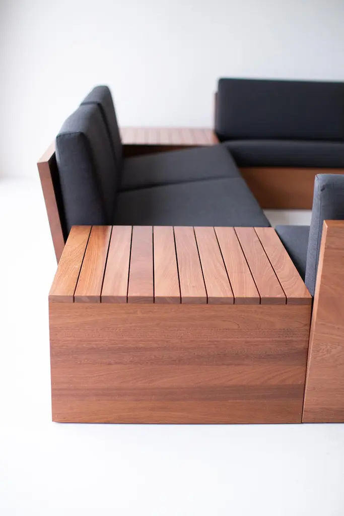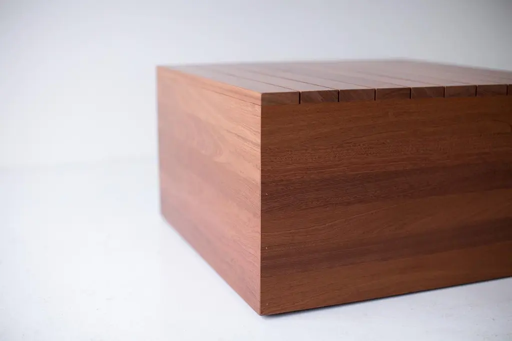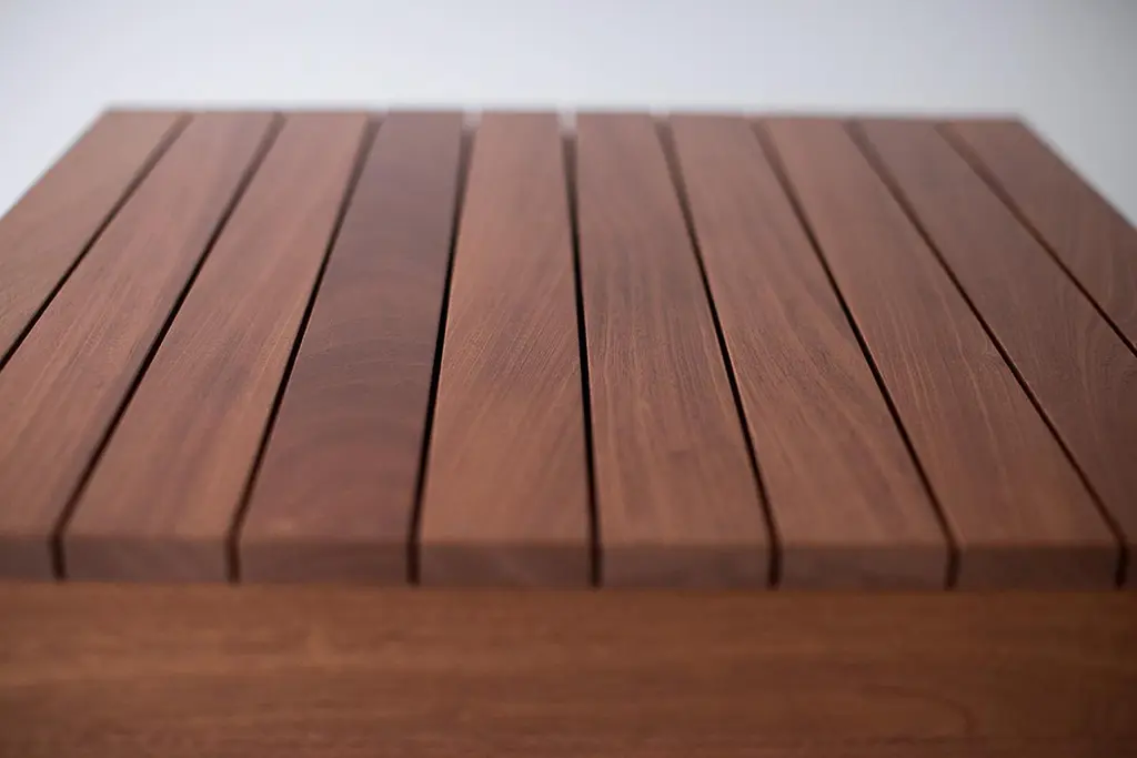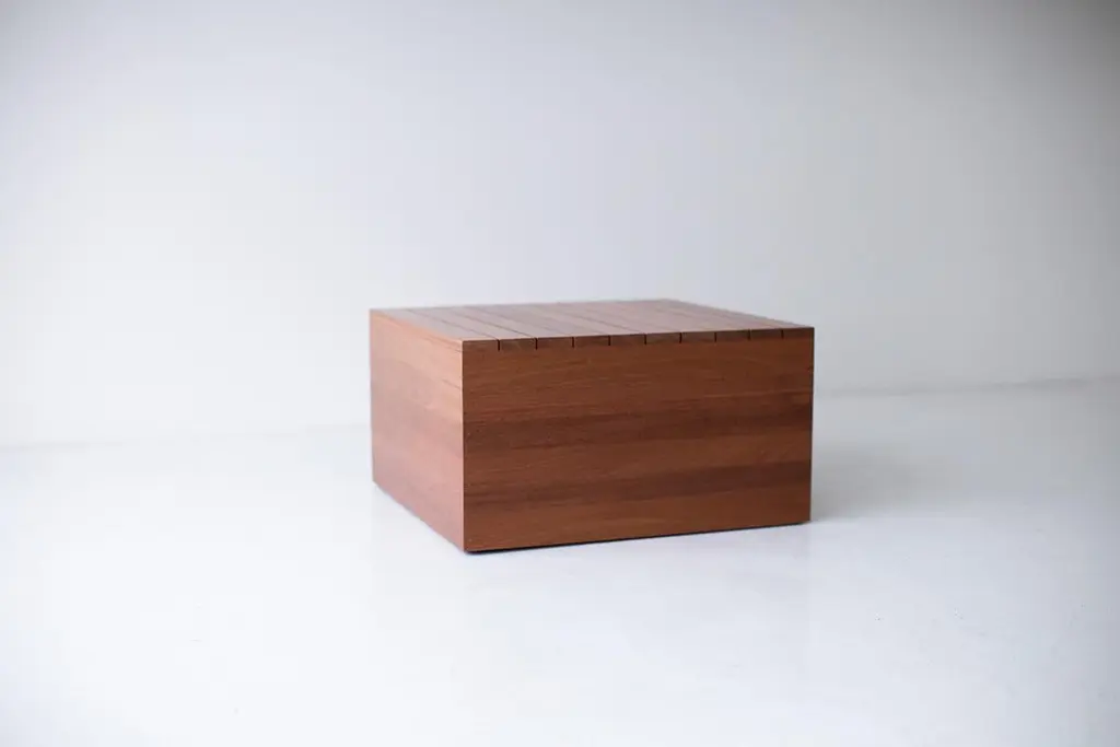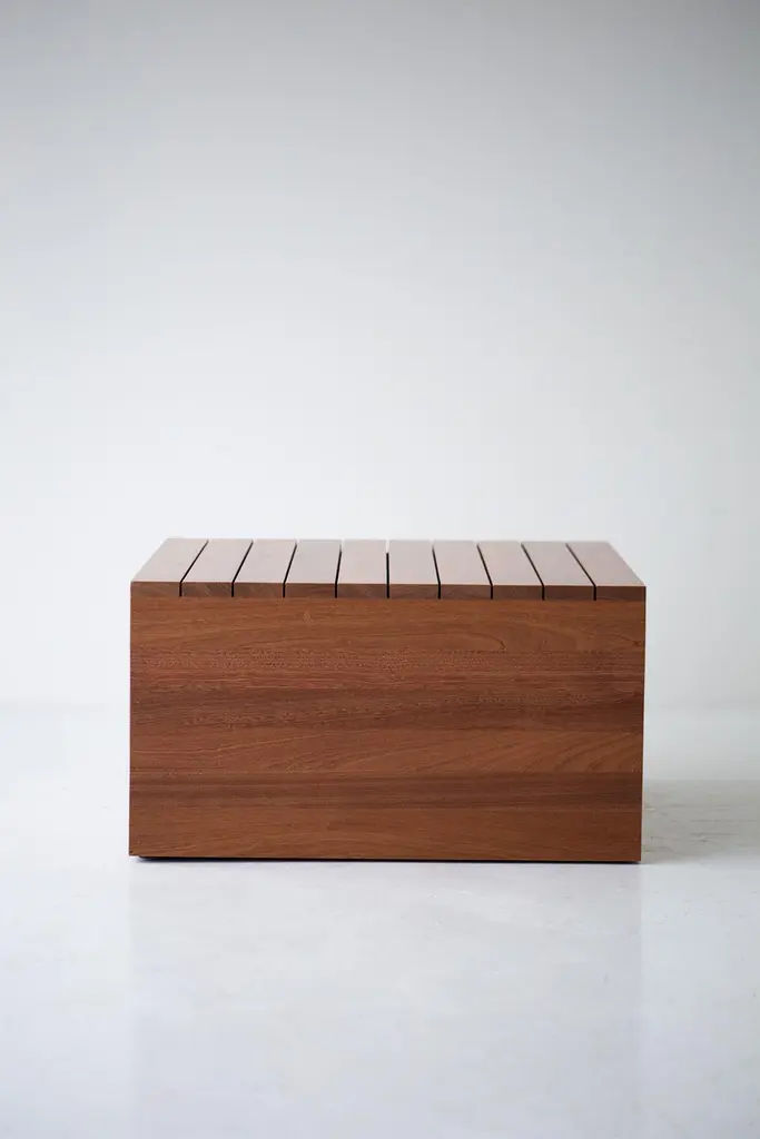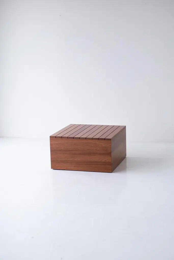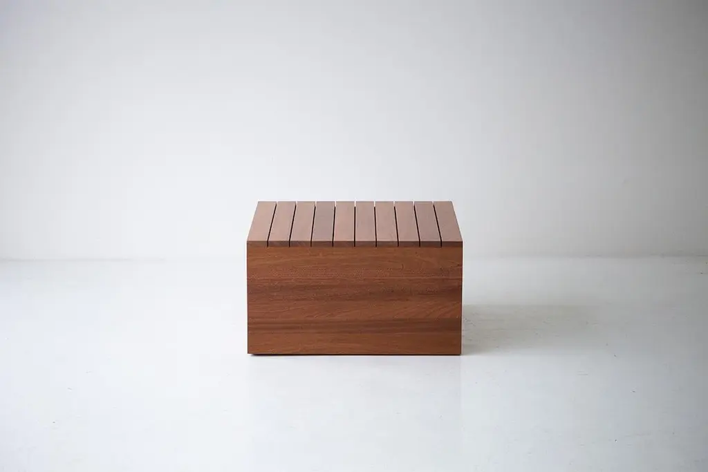 This outdoor bali end table is beautifully constructed from solid wood in Ohio, USA. This silhouette is simple and modern with sleek slats that are made for outdoor use. This piece snuggles up perfectly to the side of any of our Bali chairs or loveseats. The sapele mahogany wood frame is suitable for outdoor conditions and finished with a commercial grade exterior finish. Finish options include natural, grey-wash, dark walnut, and ebony. This specific wood species is our outdoor version; please contact for less expensive, indoor options. Designer Inspiration: "The Bali collection was created as a break at the end of the day. Its simple silhouette offers a low and relaxed feel. The back is at a perfect angle for lounging and relaxing but also comfortable and upright enough for a night of conversation. Life is busy and it's important to take time to unwind. The focus of this collection is to do just that - create a space that acts as a refuge from the busyness of the world. I've never been to Bali, but I've heard it's magical; A wonderful blend of culture, people, nature, activities, beautiful weather, and great food and nightlife. I want to recreate that with this Collection. Use it indoor or outdoor. I want this collection to remind you to slow down and enjoy life." -Gretta Jones specsPeriod / Model: New; ModernSpecs: Sapele Mahogany, Natural Commercial Grade Exterior FinishCustomizable: Yes! It's what we do :) dimensions:H: 14" W: 25.5"D: 25.5" careOur furniture is solid wood, not veneer, and it requires special care. Please care for it! We recommend outdoor covers when pieces are not being used, especially in extreme weather. Outdoor covers are available through Bertu Home. Customer is responsible for normal care of this product.