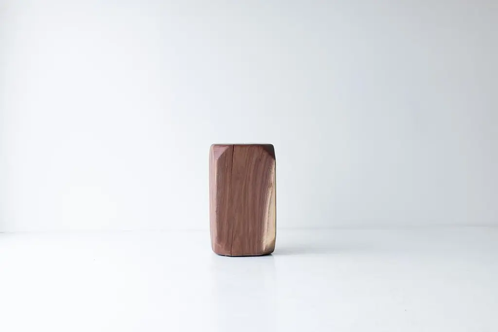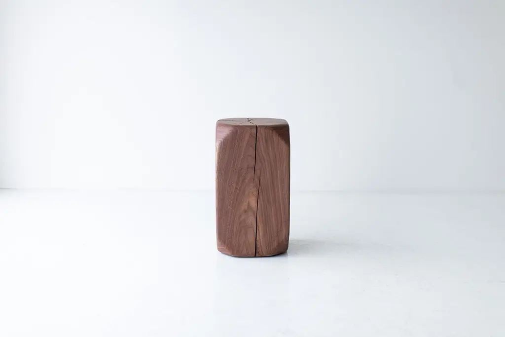 Bertu End Table, Walnut End Table, the Dublin, ModernWhy buy BERTU stumps?Kiln DriedOur stumps all go through a drying process in our kiln, sometimes for up to a month. We are meticulous with bringing each and every log to a specific moisture level. This process helps with major cracking, long-term moisture issues, and bugs.Eco FriendlyIn an effort to replenish the trees we use, we plant 50+ trees a year. In addition, we practice salvage logging. Where do we source these? Some of the trees fall naturally. Some have damage from severe wind, lightning, flood, disease, or other natural disturbance so they need to be cut and removed before they fall. Others are fresh cut because people want them off their land. Salvage logging may reduce erosion, reduce intensity of future wildfires, and slow buildup of pest insects.Family OwnedThese are made from our family to yours. Quality is of utmost importance, and we hand cut, de-bark, sand, and finish every piece with care. See how we do it here.Commercial GradeThese stumps are meant to be loved and USED. Each is finished with a durable commercial-grade finish. This finish is tough enough for spills, kids, and holds up in hotel and hospitality settings.Please note : These stumps will age naturally, and even more so being outdoors and exposed to the elements. Each is a solid log with its own unique character so we can not guarantee the finish won't fade or discolor as this varies per climate and log. This Solid Walnut Side Table - The Dublin is made in the heart of Ohio with locally sourced wood. The walnut table can be used for a side table, a stool (the 18" for dining seat height), or grouped together for a coffee table. Each one is made from a solid trunk of walnut and the corners are beautifully angled and sculpted. Each piece is hand sawed, sanded, and sprayed with a commercial grade finish. Every part of the process is handled with care to honor the unique markings of each tree. Please note: these are prone to cracking. We love the look but these definitely are not for the person who wants a perfect square. Lots of character. Cracks can even be as big as 1/2" wide due to proper drying in our kiln. The idea is that most of the cracking happens before it is sprayed, shipped, and in its new home. These are all slightly different in character and they may vary in size - No two pieces are exactly alike. Our team and clients absolutely love these."I love natural elements. I'm inspired by them and I love being surrounded by them. I also love modern furniture and accessories. When thinking of new products a few years back, I wanted to do a modern twist on something considered rustic and "country".Thus the whitewash stump table was born! It's important to our family to not only design and manufacture beautiful things, but to provide the best quality and experience. There is a lot of love that goes into each stump, as we hand pick and finish each one per order. Add a little piece of nature to your home in a modern way!" -- Gretta Jones // Bertu HomeImportant information about our stumps...1. Please unpack your stump immediately and leave it out of any packaging. These are real pieces of wood and need to breathe!2. For OUTDOOR stumps : Though these are kiln dried and the wood can be used outdoors, sometimes when they arrive in different climates, humidity levels adjust and can affect the finish on top. We see this more often in direct sunlight. We do our very best and continue to make sure there are no issues, but we can not control climate. Solid wood and the elements are unpredictable and we will not be liable. The great thing about these logs is you can always sand them down and refinish.3. Wood naturally moves. These are solid pieces and for that reason, they are prone to cracking. You may get more cracks or bigger cracks in the first few weeks as the wood acclimates to its new home and climate.4. These stump tables have nylon glides (feet) underneath not only to make them easier to move around (they are heavy!), but also so there is nice air flow to the wood. The air flow is most effective on hard flooring. If you put these on rugs or carpeting, we suggest checking on the underside of your stump periodically to prevent any issues.5. We are not liable for any damages to property or people. We are always available, honest, and transparent about our products. Thank you and I hope you love these!SpecsPeriod/Model: New; Organic ModernSpecs: Walnut, Commercial-Grade FinishCustomizable: Yes! It's what we do :)DimensionsH: 18"W: 12" x 12".