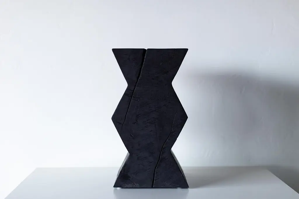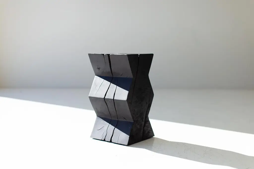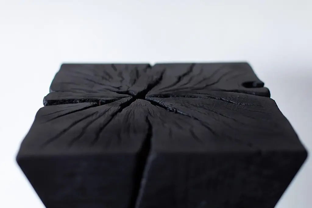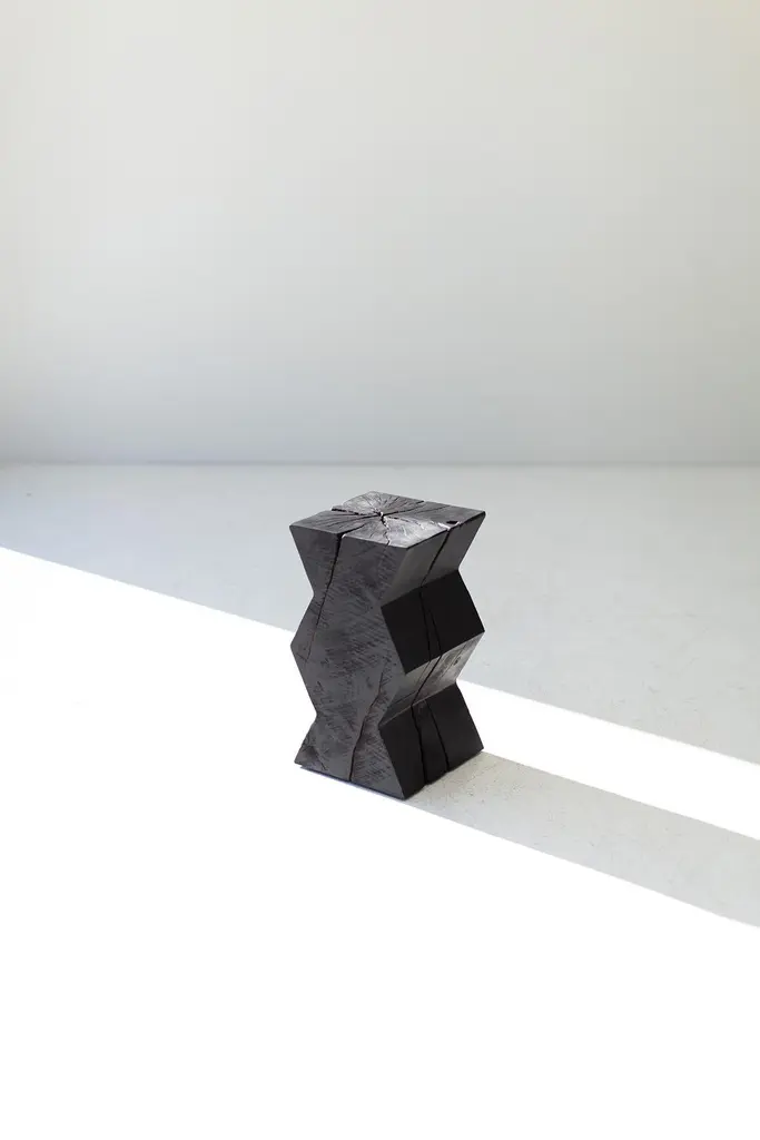 Bertu End Table, Zig Zag End Table, Burnt Finish, MapleOriginating in 18th century Japan, shou sugi ban is a particularly striking method of preserving wood by charring it with fire. Traditionally, this practice is used with Japanese cedar in order to weatherproof it. The wood is burned until the surface is charred, and then coated with natural oil.Why buy BERTU HOME stumps?Kiln DriedOur stumps all go through a drying process in our kiln, sometimes for up to a month. We are meticulous with bringing each and every log to a specific moisture level. This process helps with major cracking, long-term moisture issues, and bugs.Eco FriendlyIn an effort to replenish the trees we use, we plant 50+ trees a year. In addition, we practice salvage logging. Where do we source these? Some of the trees fall naturally. Some have damage from severe wind, lightning, flood, disease, or other natural disturbance so they need to be cut and removed before they fall. Others are fresh cut because people want them off their land. Salvage logging may reduce erosion, reduce intensity of future wildfires, and slow buildup of pest insects.Family OwnedThese are made from our family to yours. Quality is of utmost importance, and we hand cut, de-bark, sand, and finish every piece with care. See how we do it here.Commercial gradeThese stumps are meant to be loved and USED. Each is finished with a durable commercial-grade finish. This finish is tough enough for spills, kids, and holds up in hotel and hospitality settings.This Zig Zag End Table - Burnt Finish in Solid Maple is made in the heart of Ohio with locally sourced wood. The table can be used for a side table, a stool, or grouped together for a coffee table. Each stump is made from a solid trunk of maple and is hand sawed, sanded, and burned until completely charred. They are then sprayed with a clear commercial grade finish. Other finish options available! Every part of the process is handled with care to honor the unique markings of each tree. Please note: these are prone to cracking. We love the look but these definitely are not for the person who wants a perfect square. Lots of character. Cracks can even be as big as 1/2" wide due to proper drying in our kiln. The idea is that most of the cracking happens before it is sprayed, shipped, and in its new home. These are all slightly different in character and they may vary in size - No two pieces are exactly alike. Our team and clients absolutely love these."I love natural elements. I'm inspired by them and I love being surrounded by them. I also love modern furniture and accessories. When thinking of new products a few years back, I wanted to do a modern twist on something considered rustic.Thus the whitewash stump table was born! It's important to our family to not only design and manufacture beautiful things, but to provide the best quality and experience. There is a lot of love that goes into each stump, as we hand pick and finish each one per order. Add a little piece of nature to your home in a modern way!" -- Gretta Jones // Bertu HomeImportant information about our stumps1. Please unpack your stump immediately and leave it out of any packaging. These are real pieces of wood and need to breathe!2. For OUTDOOR stumps : Though these are kiln dried and the wood can be used outdoors, sometimes when they arrive in different climates, humidity levels adjust and can affect the finish on top. We see this more often in direct sunlight. We do our very best and continue to make sure there are no issues, but we can not control climate. Solid wood and the elements are unpredictable and we will not be liable. The great thing about these logs is you can always sand them down and refinish.3. Wood naturally moves. These are solid pieces and for that reason, they are prone to cracking. You may get more cracks or bigger cracks in the first few weeks as the wood acclimates to its new home and climate.4. These stump tables have nylon glides (feet) underneath not only to make them easier to move around (they are heavy!), but also so there is nice air flow to the wood. The air flow is most effective on hard flooring. If you put these on rugs or carpeting, we suggest checking on the underside of your stump periodically to prevent any issues.5. We are not liable for any damages to property or people. If you have any concerns or questions you need to discuss, please write or call. We are always available, honest, and transparent about our products. Thank you and I hope you love these!SpecsPeriod/Model: New; ModernSpecs: Maple, Natural Commercial-Grade FinishCustomizable: Yes! It's what we do :)DimensionsH: 21"W: 12".