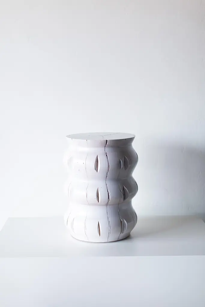 Bertu Side Table, Modern Side Table, the Willow, Red CedarPlease scroll down to read important instructions about our stumps before purchase!Why buy bertu home stumps?Kiln DriedOur stumps all go through a drying process in our kiln, sometimes for up to a month. We are meticulous with bringing each and every log to a specific moisture level. This process helps with major cracking, long-term moisture issues, and bugs.Eco friendlyIn an effort to replenish the trees we use, we plant 50+ trees a year. In addition, we practice salvage logging. Where do we source these? Some of the trees fall naturally. Some have damage from severe wind, lightning, flood, disease, or other natural disturbance so they need to be cut and removed before they fall. Others are fresh cut because people want them off their land. Salvage logging may reduce erosion, reduce intensity of future wildfires, and slow buildup of pest insects.Family ownedThese are made from our family to yours. Quality is of utmost importance, and we hand cut, de-bark, sand, and finish every piece with care.See how we do it here.Commercial gradeThese stumps are meant to be loved and USED. Each is finished with a durable commercial-grade finish. This finish is tough enough for spills, kids, and holds up in hotel and hospitality settings.This Organic Modern Side Table - The Willow is hand sculpted in the heart of Ohio out of a solid truck of local red cedar. The side table can be used for a nightstand, a stool, or grouped together for an architectural larger table. They are great next to a chair, sofa, or bathtub. Each stump is made from a solid trunk of red cedar and is hand sawed, sanded, and sprayed with a whitewash commercial grade finish. Other finishes available! Every part of the process is handled with care - even the bark is hand chipped and sanded to honor the unique markings of each tree. Note: These are REAL tree stumps. Natural movement and cracking is normal. These are all slightly different in character and they may vary in size - No two pieces are exactly alike. These are true pieces of art!Important information about our stumps.1. Please unpack your stump immediately and leave it out of any packaging. These are real pieces of wood and need to breathe!2. For OUTDOOR stumps : Though these are kiln dried and the wood can be used outdoors, sometimes when they arrive in different climates, humidity levels adjust and can affect the finish on top. We see this more often in direct sunlight. We do our very best and continue to make sure there are no issues, but we can not control climate. Solid wood and the elements are unpredictable and we will not be liable. The great thing about these logs is you can always sand them down and refinish.3. Wood naturally moves. These are solid pieces and for that reason, they are prone to cracking. You may get more cracks or bigger cracks in the first few weeks as the wood acclimates to its new home and climate.4. These stump tables have nylon glides (feet) underneath not only to make them easier to move around (they are heavy!), but also so there is nice air flow to the wood. The air flow is most effective on hard flooring. If you put these on rugs or carpeting, we suggest checking on the underside of your stump periodically to prevent any issues.5. We are not liable for any damages to property or people. specsPeriod/Model: New; Organic ModernSpecs: Red Cedar, Whitewash Commercial Grade FinishdimensionsH: 19.5"W: 13".