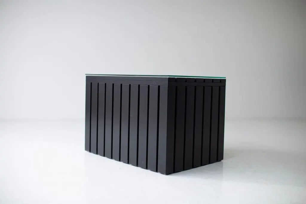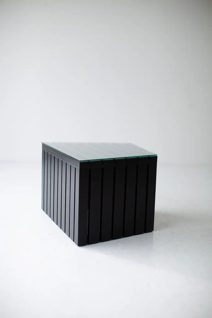 Bertu Side Table, Outdoor Side Table, the CragThis Outdoor Side Table - The Crag is made in the heart of Ohio with locally sourced wood. The Sapele Mahogany wood slatted frame is suitable for outdoor conditions and finished with a commercial grade exterior finish. Finish options include natural, grey-wash, dark walnut, and ebony. This specific wood species is our outdoor version; please contact for less expensive, indoor options. This piece is sculptural and versatile. Pair it with our larger Crag Table for an interesting coffee table! We love these.SpecsPeriod/Model: New; ModernSpecs: Sapele Mahogany, Commercial grade exterior finishCustomizable: Yes! It's what we do :)dimensionsH: 17"W: 29"D: 23"Bertu Home SKU: Bertu Side Table, Outdoor Side Table, the Crag.