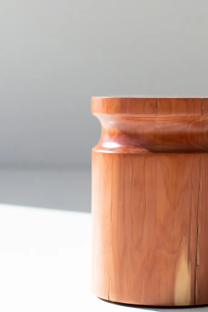 Bertu Side Table, Small Side Table, the Sprout, Red CedarPlease scroll down to read important instructions about our stumps before purchase!Why buy BERTU HOME stumps?KILN DRIEDOur stumps all go through a drying process in our kiln, sometimes for up to a month. We are meticulous with bringing each and every log to a specific moisture level. This process helps with major cracking, long-term moisture issues, and bugs.ECO FRIENDLYIn an effort to replenish the trees we use, we plant 50+ trees a year. In addition, we practice salvage logging. Where do we source these? Some of the trees fall naturally. Some have damage from severe wind, lightning, flood, disease, or other natural disturbance so they need to be cut and removed before they fall. Others are fresh cut because people want them off their land. Salvage logging may reduce erosion, reduce intensity of future wildfires, and slow buildup of pest insects.FAMILY OWNEDThese are made from our family to yours. Quality is of utmost importance, and we hand cut, de-bark, sand, and finish every piece with care. See how we do it here.COMMERCIAL GRADEThese stumps are meant to be loved and USED. Each is finished with a durable commercial-grade finish. This finish is tough enough for spills, kids, and holds up in hotel and hospitality settings.This Small Side Table - The Sprout is hand sculpted in the heart of Ohio out of a solid truck of local red cedar. The side table can be used for a nightstand, a stool, or grouped together for an architectural larger table. They are great next to a chair, sofa, or bathtub. Each stump is made from a solid trunk of red cedar and is hand sawed, sanded, and sprayed with a natural commercial grade finish. Other finish options available! Every part of the process is handled with care - even the bark is hand chipped and sanded to honor the unique markings of each tree. Note: These are REAL tree stumps. Natural movement and cracking is normal. These are all slightly different in character and they may vary in size - No two pieces are exactly alike. This finish is for indoor use but they can be sprayed with our outdoor finish for an additional $30. These are true pieces of art!IMPORTANT INFORMATION ABOUT OUR STUMPS1. Please unpack your stump immediately and leave it out of any packaging. These are real pieces of wood and need to breathe!2. For OUTDOOR stumps : Though these are kiln dried and the wood can be used outdoors, sometimes when they arrive in different climates, humidity levels adjust and can affect the finish on top. We see this more often in direct sunlight. We do our very best and continue to make sure there are no issues, but we can not control climate. Solid wood and the elements are unpredictable and we will not be liable. The great thing about these logs is you can always sand them down and refinish.3. Wood naturally moves. These are solid pieces and for that reason, they are prone to cracking. You may get more cracks or bigger cracks in the first few weeks as the wood acclimates to its new home and climate.4. These stump tables have nylon glides (feet) underneath not only to make them easier to move around (they are heavy!), but also so there is nice air flow to the wood. The air flow is most effective on hard flooring. If you put these on rugs or carpeting, we suggest checking on the underside of your stump periodically to prevent any issues.specsPeriod/Model: New; Organic ModernSpecs: Red Cedar, Commercial Grade FinishdimensionsH: 15"W: 11.5"