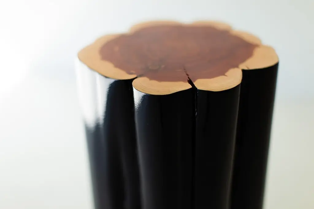Bertu Stump Table, Black Outdoor Stump Table, Natural Top, Red Cedar