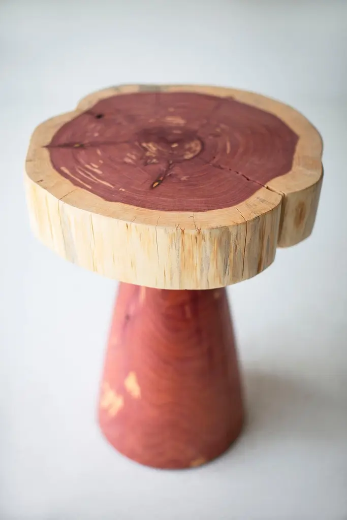 Please scroll down to read IMPORTANT INSTRUCTIONS ABOUT OUR STUMPS before purchase!Why buy BERTU HOME stumps?KILN DRIEDOur stumps all go through a drying process in our kiln, sometimes for up to a month. We are meticulous with bringing each and every log to a specific moisture level. This process helps with major cracking, long-term moisture issues, and bugs.ECO FRIENDLYIn an effort to replenish the trees we use, we plant 50+ trees a year. In addition, we practice salvage logging. Where do we source these? Some of the trees fall naturally. Some have damage from severe wind, lightning, flood, disease, or other natural disturbance so they need to be cut and removed before they fall. Others are fresh cut because people want them off their land. Salvage logging may reduce erosion, reduce intensity of future wildfires, and slow buildup of pest insects.FAMILY OWNEDThese are made from our family to yours. Quality is of utmost importance, and we hand cut, de-bark, sand, and finish every piece with care. See how we do it here.COMMERCIAL GRADEThese stumps are meant to be loved and USED. Each is finished with a durable commercial-grade finish. This finish is tough enough for spills, kids, and holds up in hotel and hospitality settings.This Natural Red Cedar Side Table - The Summit is hand sculpted in the heart of Ohio out of a solid truck of local red cedar. The side table can be used for a nightstand, a stool, or grouped together for an architectural larger table. They are great next to a chair, sofa, or bathtub. Each stump is made from a solid trunk of red cedar and is hand sawed, sanded, and sprayed with a whitewash commercial grade finish. Every part of the process is handled with care - even the bark is hand chipped and sanded to honor the unique markings of each tree. Note: These are REAL tree stumps. Natural movement and cracking is normal. These are all slightly different in character and they may vary in size - No two pieces are exactly alike. This finish is for indoor use but they can be sprayed with our outdoor finish for an additional $50. These are true pieces of art!IMPORTANT INFORMATION ABOUT OUR STUMPS...1. Please unpack your stump immediately and leave it out of any packaging. These are real pieces of wood and need to breathe!2. For OUTDOOR stumps : Though these are kiln dried and the wood can be used outdoors, sometimes when they arrive in different climates, humidity levels adjust and can affect the finish on top. We see this more often in direct sunlight. We do our very best and continue to make sure there are no issues, but we can not control climate. Solid wood and the elements are unpredictable and we will not be liable. The great thing about these logs is you can always sand them down and refinish.3. Wood naturally moves. These are solid pieces and for that reason, they are prone to cracking. You may get more cracks or bigger cracks in the first few weeks as the wood acclimates to its new home and climate.4. These stump tables have nylon glides (feet) underneath not only to make them easier to move around (they are heavy!), but also so there is nice air flow to the wood. The air flow is most effective on hard flooring. If you put these on rugs or carpeting, we suggest checking on the underside of your stump periodically to prevent any issues.5. We are not liable for any damages to property or people. If you have any concerns or questions you need to discuss, please write or call. We are always available, honest, and transparent about our products. Thank you and I hope you love these!specsPeriod/Model: New; Organic ModernSpecs: Red Cedar, Commercial Grade FinishdimensionsH: 21",W: 15" (give or take)