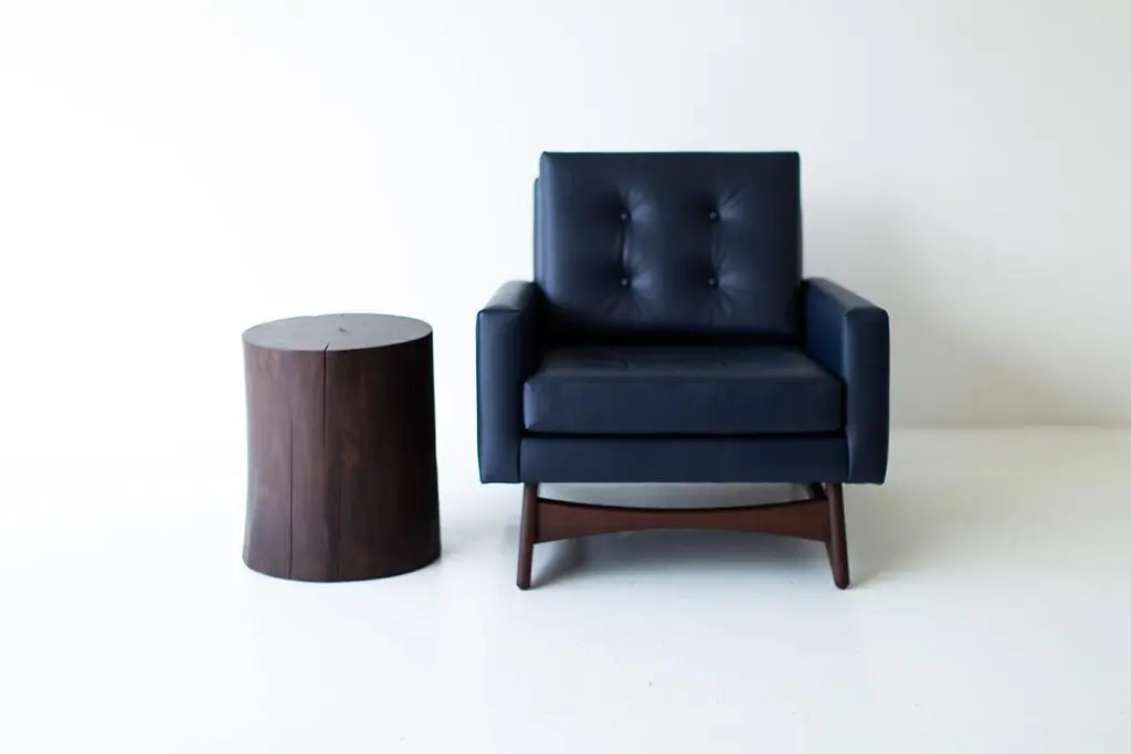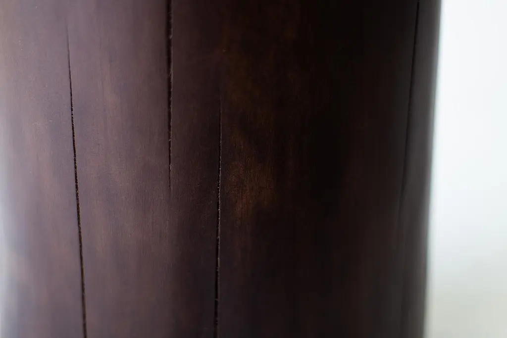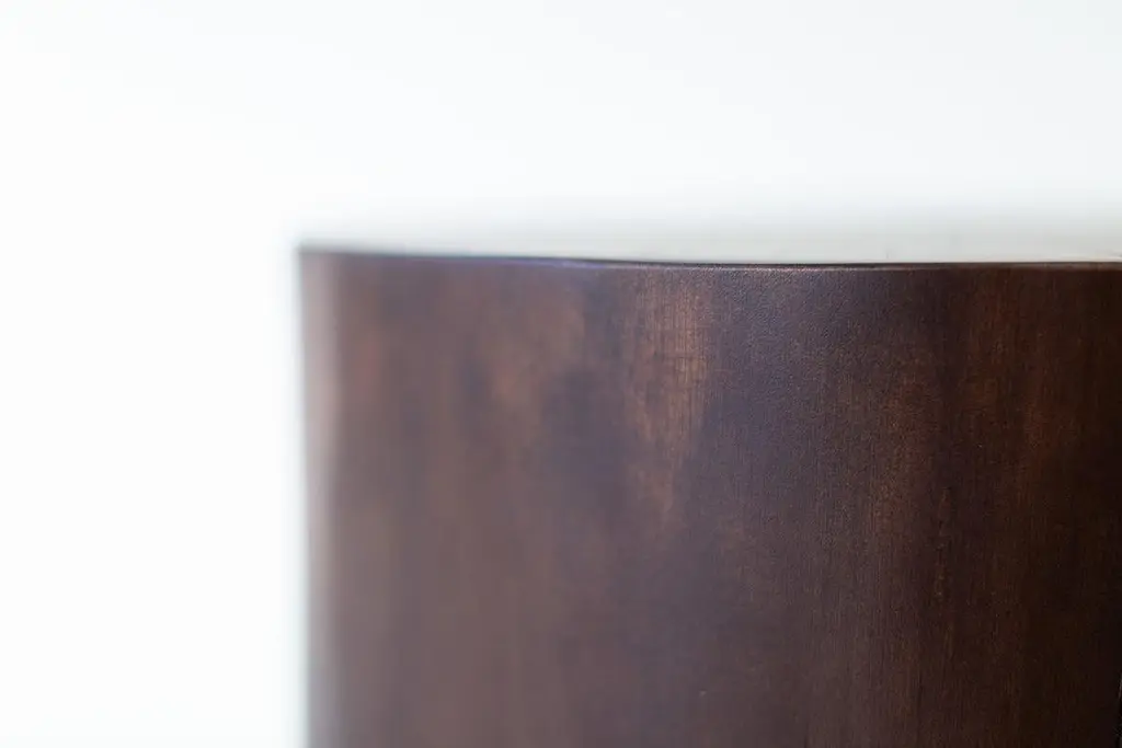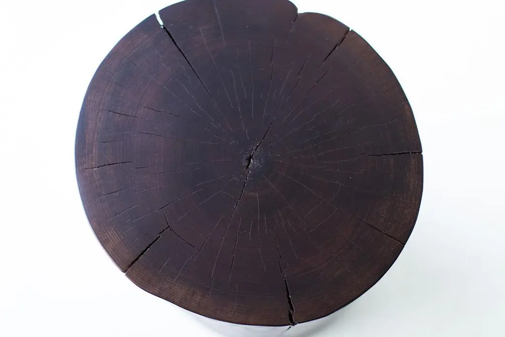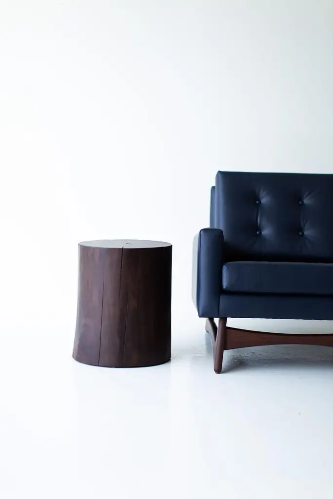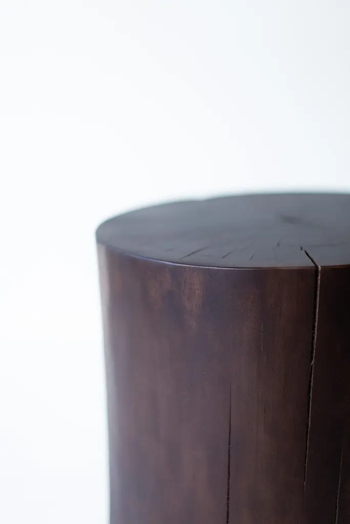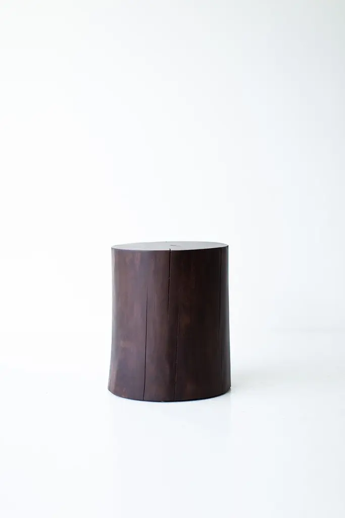 Bertu Tables, Solid Walnut Table, Stump Please scroll down to read IMPORTANT INSTRUCTIONS ABOUT OUR STUMPS before purchase!Why buy BERTU HOME stumps?KILN DRIEDOur stumps all go through a drying process in our kiln, sometimes for up to a month. We are meticulous with bringing each and every log to a specific moisture level. This process helps with major cracking, long-term moisture issues, and bugs.ECO FRIENDLYIn an effort to replenish the trees we use, we plant 50+ trees a year. In addition, we practice salvage logging. Where do we source these? Some of the trees fall naturally. Some have damage from severe wind, lightning, flood, disease, or other natural disturbance so they need to be cut and removed before they fall. Others are fresh cut because people want them off their land. Salvage logging may reduce erosion, reduce intensity of future wildfires, and slow buildup of pest insects.FAMILY OWNEDThese are made from our family to yours. Quality is of utmost importance, and we hand cut, de-bark, sand, and finish every piece with care.See how we do it here.COMMERCIAL GRADEThese stumps are meant to be loved and USED. Each is finished with a durable commercial-grade finish. This finish is tough enough for spills, kids, and holds up in hotel and hospitality settings.This tree stump table is made in the heart of Ohio with locally sourced wood. The stump can be used for a side table, a stool, or grouped together for a coffee table. Each stump is made from a solid trunk of walnut and each is hand sawed, sanded, and sprayed with a commercial grade finish. Every part of the process is handled with care - even the bark is hand chipped and sanded to honor the unique markings of each tree. Note: These are REAL tree stumps. Natural movement and cracking is normal. These are all slightly different in character and they may vary in size - No two pieces are exactly alike. Our team and clients absolutely love these."I love natural elements. I'm inspired by them and I love being surrounded by them. I also love modern furniture and accessories. When thinking of new products a few years back, I wanted to do a modern twist on something considered rustic.Thus the whitewash stump table was born! It's important to our family to not only design and manufacture beautiful things, but to provide the best quality and experience. There is a lot of love that goes into each stump, as we hand pick and finish each one per order. Add a little piece of nature to your home in a modern way!" -- Gretta Jones // Bertu Home IMPORTANT INFORMATION ABOUT OUR STUMPS...1. Please unpack your stump immediately and leave it out of any packaging. These are real pieces of wood and need to breathe!2. For OUTDOOR stumps : Though these are kiln dried and the wood can be used outdoors, sometimes when they arrive in different climates, humidity levels adjust and can affect the finish on top. We see this more often in direct sunlight. We do our very best and continue to make sure there are no issues, but we can not control climate. Solid wood and the elements are unpredictable and we will not be liable. The great thing about these logs is you can always sand them down and refinish.3. Wood naturally moves. These are solid pieces and for that reason, they are prone to cracking. You may get more cracks or bigger cracks in the first few weeks as the wood acclimates to its new home and climate.4. These stump tables have nylon glides (feet) underneath not only to make them easier to move around (they are heavy!), but also so there is nice air flow to the wood. The air flow is most effective on hard flooring. If you put these on rugs or carpeting, we suggest checking on the underside of your stump periodically to prevent any issues.5. We are not liable for any damages to property or people. If you have any concerns or questions you need to discuss, please write or call. We are always available, honest, and transparent about our products. Thank you and I hope you love these!+ + + + + + + + + + + + + + + + + + + + + + +specsPeriod/Model: New; Organic ModernIndoor/Outdoor: IndoorSpecs: Solid Walnut, Commercial-Grade FinishdimensionsH: 15", 18", 21"W: 14" - 16" (give or take)SKU: Bertu Tables, Solid Walnut Table, Stump
