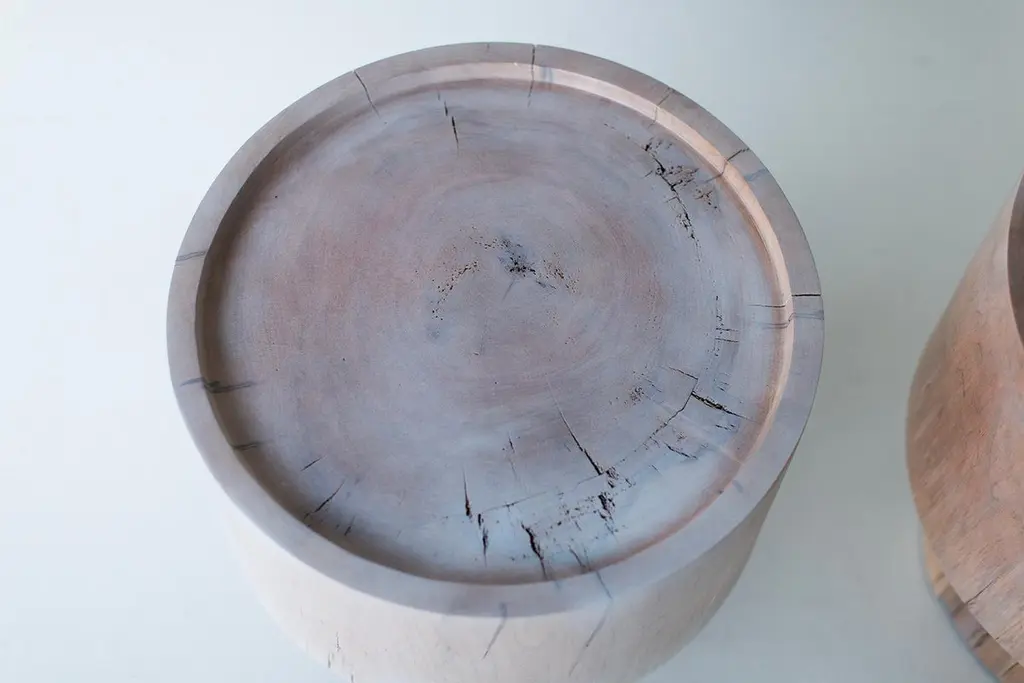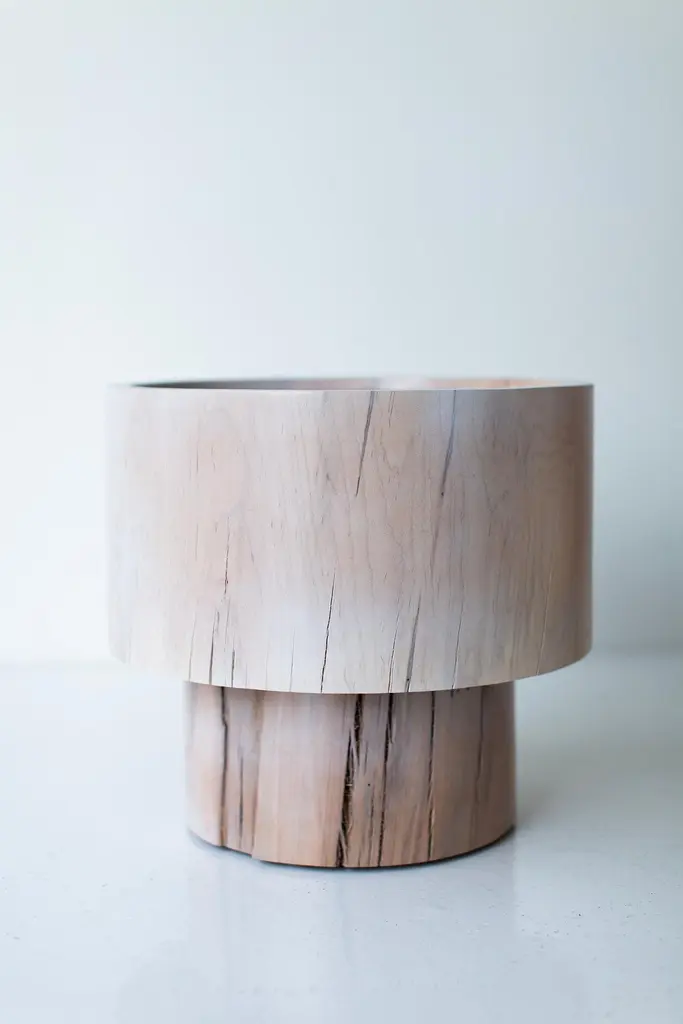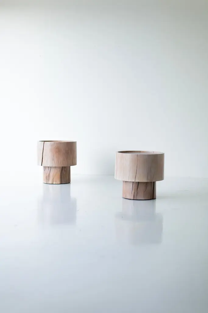 Bertu, Wood Side Table, Modern, Side Table, BreezePlease scroll down to read IMPORTANT INSTRUCTIONS ABOUT OUR STUMPS before purchase!Why buy BERTU HOME stumps?KILN DRIEDOur stumps all go through a drying process in our kiln, sometimes for up to a month. We are meticulous with bringing each and every log to a specific moisture level. This process helps with major cracking, long-term moisture issues, and bugs.ECO FRIENDLYIn an effort to replenish the trees we use, we plant 50+ trees a year. In addition, we practice salvage logging. Where do we source these? Some of the trees fall naturally. Some have damage from severe wind, lightning, flood, disease, or other natural disturbance so they need to be cut and removed before they fall. Others are fresh cut because people want them off their land. Salvage logging may reduce erosion, reduce intensity of future wildfires, and slow buildup of pest insects.FAMILY OWNEDThese are made from our family to yours. Quality is of utmost importance, and we hand cut, de-bark, sand, and finish every piece with care.See how we do it here.COMMERCIAL GRADEThese stumps are meant to be loved and USED. Each is finished with a durable commercial-grade finish. This finish is tough enough for spills, kids, and holds up in hotel and hospitality settings.This Modern Wood Side Table - The Breeze is hand sculpted in the heart of Ohio with locally sourced wood. Each piece is made from a solid trunk of rough cut maple and each is hand sawed, sanded, and sprayed with a commercial grade whitewash finish. Other finishes available! Every part of the process is handled with care to honor the unique markings of each tree. PLEASE NOTE: THESE ARE PRONE TO CRACKING. WE LOVE THE LOOK BUT THESE DEFINITELY ARE NOT FOR THE PERSON WHO WANTS A PERFECT SQUARE.... LOTS OF CHARACTER. Cracks can even be as big as 1/2" wide due to proper drying in our kiln. The idea is that most of the cracking happens before it is sprayed, shipped, and in its new home. These are all slightly different in character and they may vary in size - No two pieces are exactly alike. Our team and clients absolutely love these."I love natural elements. I'm inspired by them and I love being surrounded by them. I also love modern furniture and accessories. When thinking of new products a few years back, I wanted to do a modern twist on something considered rustic.Thus the whitewash stump table was born! It's important to our family to not only design and manufacture beautiful things, but to provide the best quality and experience. There is a lot of love that goes into each stump, as we hand pick and finish each one per order. Add a little piece of nature to your home in a modern way!" -- Gretta Jones // Bertu HomeIMPORTANT INFORMATION ABOUT OUR STUMPS...1. Please unpack your stump immediately and leave it out of any packaging. These are real pieces of wood and need to breathe!2. For OUTDOOR stumps : Though these are kiln dried and the wood can be used outdoors, sometimes when they arrive in different climates, humidity levels adjust and can affect the finish on top. We see this more often in direct sunlight. We do our very best and continue to make sure there are no issues, but we can not control climate. Solid wood and the elements are unpredictable and we will not be liable. The great thing about these logs is you can always sand them down and refinish.3. Wood naturally moves. These are solid pieces and for that reason, they are prone to cracking. You may get more cracks or bigger cracks in the first few weeks as the wood acclimates to its new home and climate.4. These stump tables have nylon glides (feet) underneath not only to make them easier to move around (they are heavy!), but also so there is nice air flow to the wood. The air flow is most effective on hard flooring. If you put these on rugs or carpeting, we suggest checking on the underside of your stump periodically to prevent any issues.5. We are not liable for any damages to property or people. If you have any concerns or questions you need to discuss, please write or call. We are always available, honest, and transparent about our products. Thank you and I hope you love these!+ + + + + + + + + + + + + + + + + + + + + + +specsPeriod/Model: New; Organic ModernSpecs: Maple, Whitewash Commercial-Grade FinishCustomizable: Yes! It's what we do :)dimensions (per piece)L: 19"W: 19"H: 17" or 19"SKU: Bertu, Wood Side Table, Modern, Side Table, Breeze
