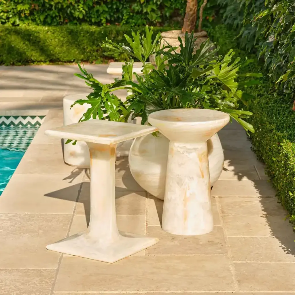 This pedestal-style accent table is cast in glossy resin, and comes in popsicle-bright colors. It's the perfect accent piece to brighten your outdoor space.