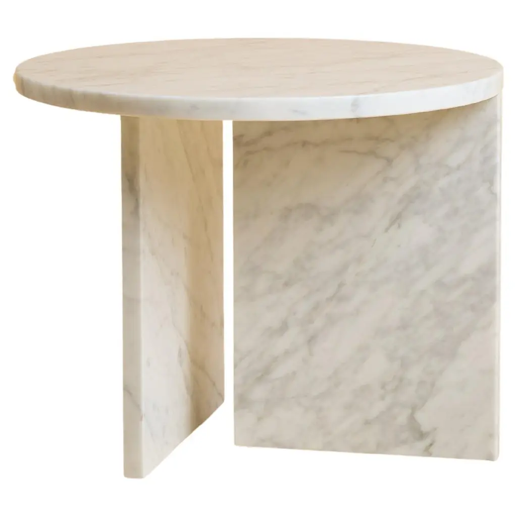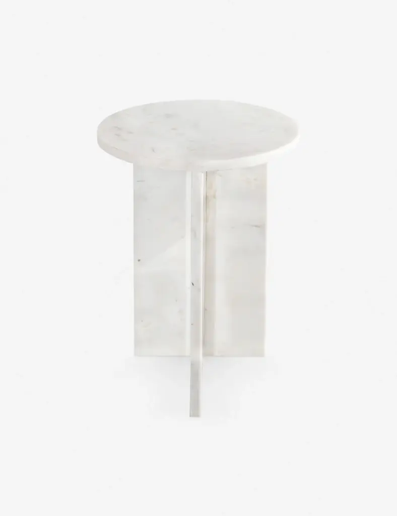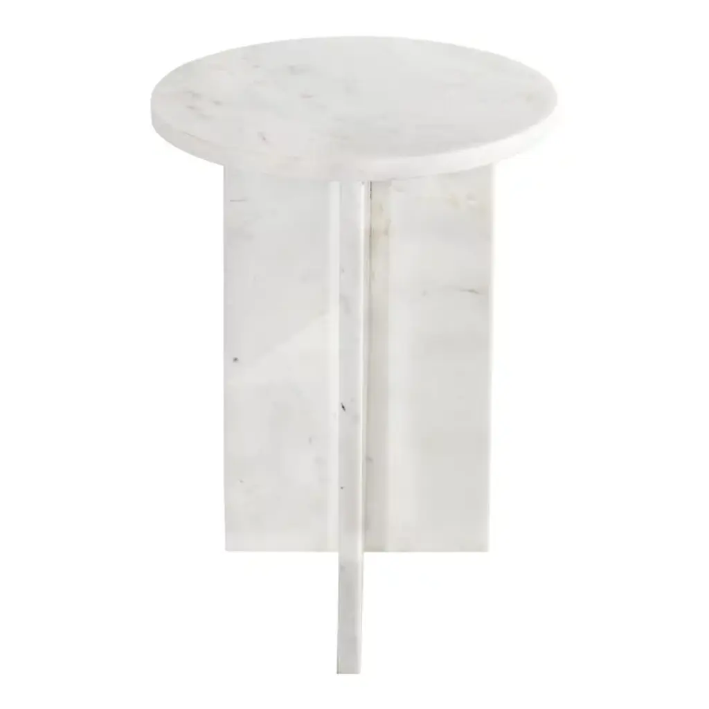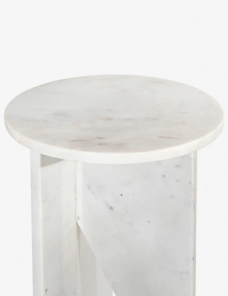 Elevate your look with a polished touch. This solid marble side table offers timeless luxury cut with geometric lines for a striking modern tone. The elemental design can be styled as a bedside or end table and evokes refined sculptural appeal.