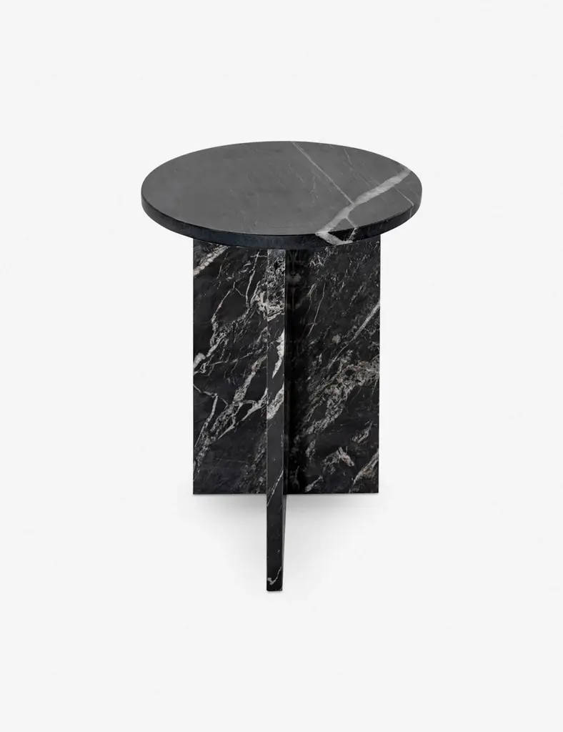 Elevate your look with a polished touch. This solid marble side table offers timeless luxury cut with geometric lines for a striking modern tone. The elemental design can be styled as a bedside or end table and evokes refined sculptural appeal.