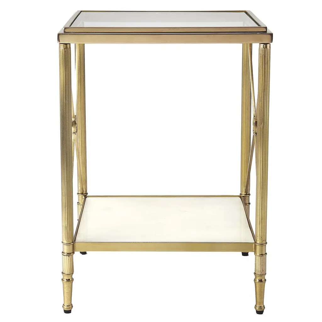 This glamorous end table is a timeless piece that exudes elegance and charm, perfect for enhancing the beauty of any room. Whether placed beside your favorite chair or serving as a pair of nightstands in the bedroom, it promises to elevate the ambiance with its sophisticated allure. The table features a clear, tempered glass top that gracefully complements its lower shelf, creating a harmonious balance of form and function. Its exquisite frame adds a touch of opulence, making it a captivating addition to your home decor.